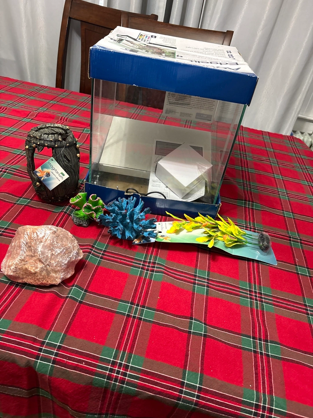 I'm selling an Aqueon Rimless Glass Aquarium. It comes with vibrant illuminated edges so you can choose from a variety of colors. It also includes a remote control with a timer and 12 preset colors. The dimensions are 11.75" x 11.75" x 12.5". It also includes an Aqueon Clip-On LED light