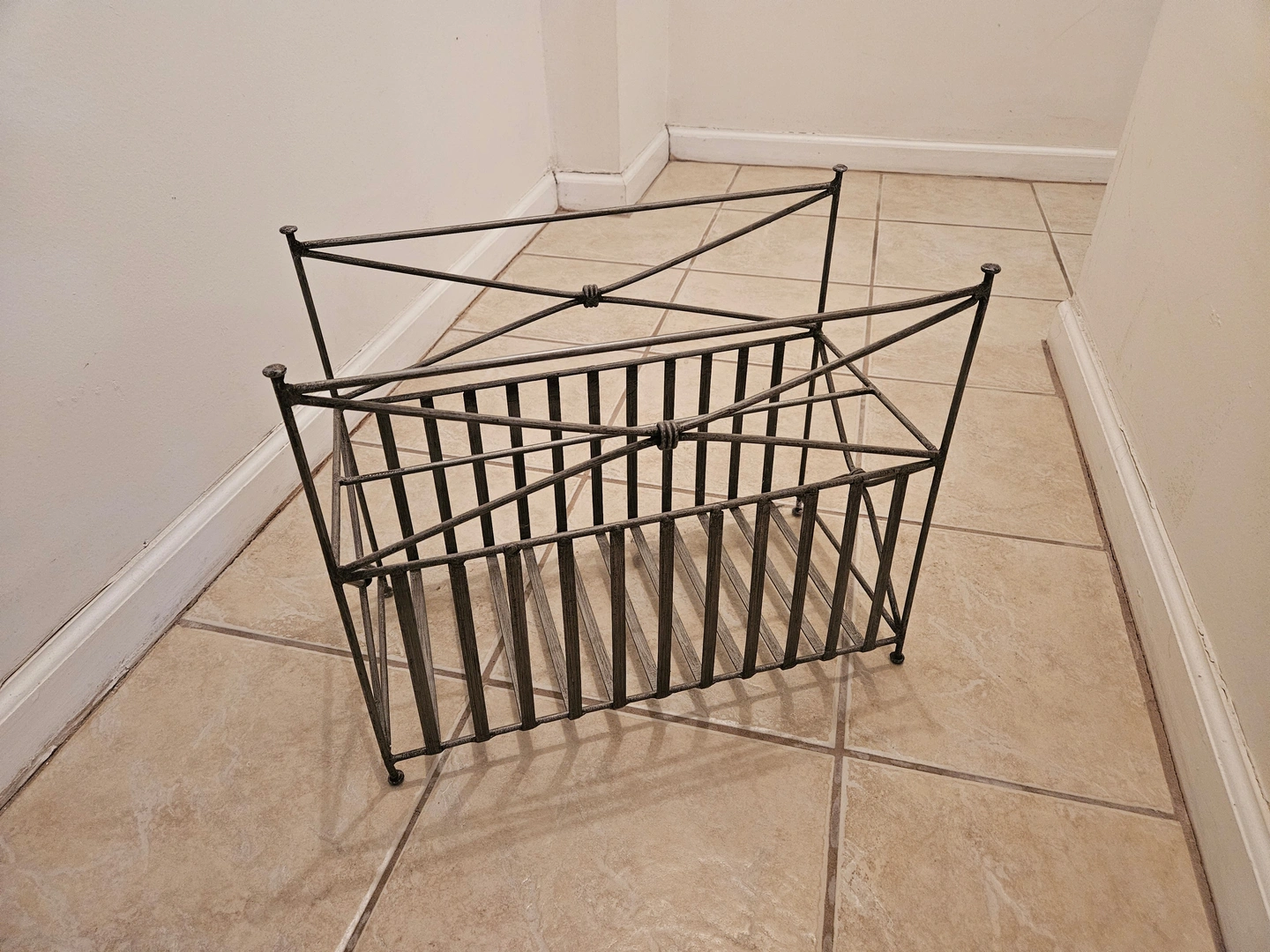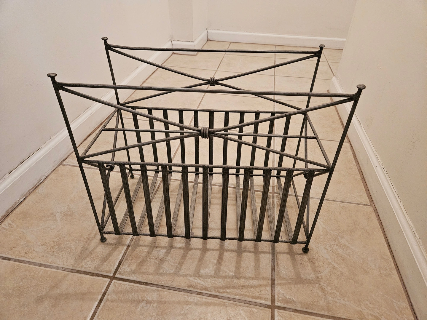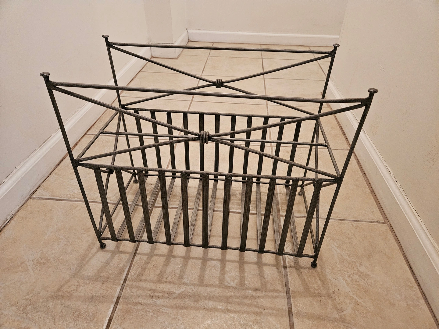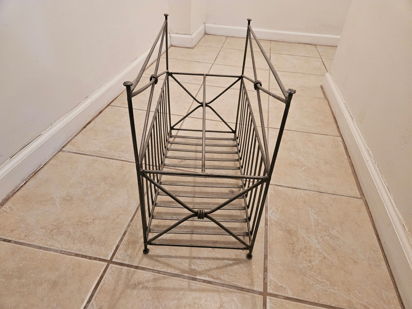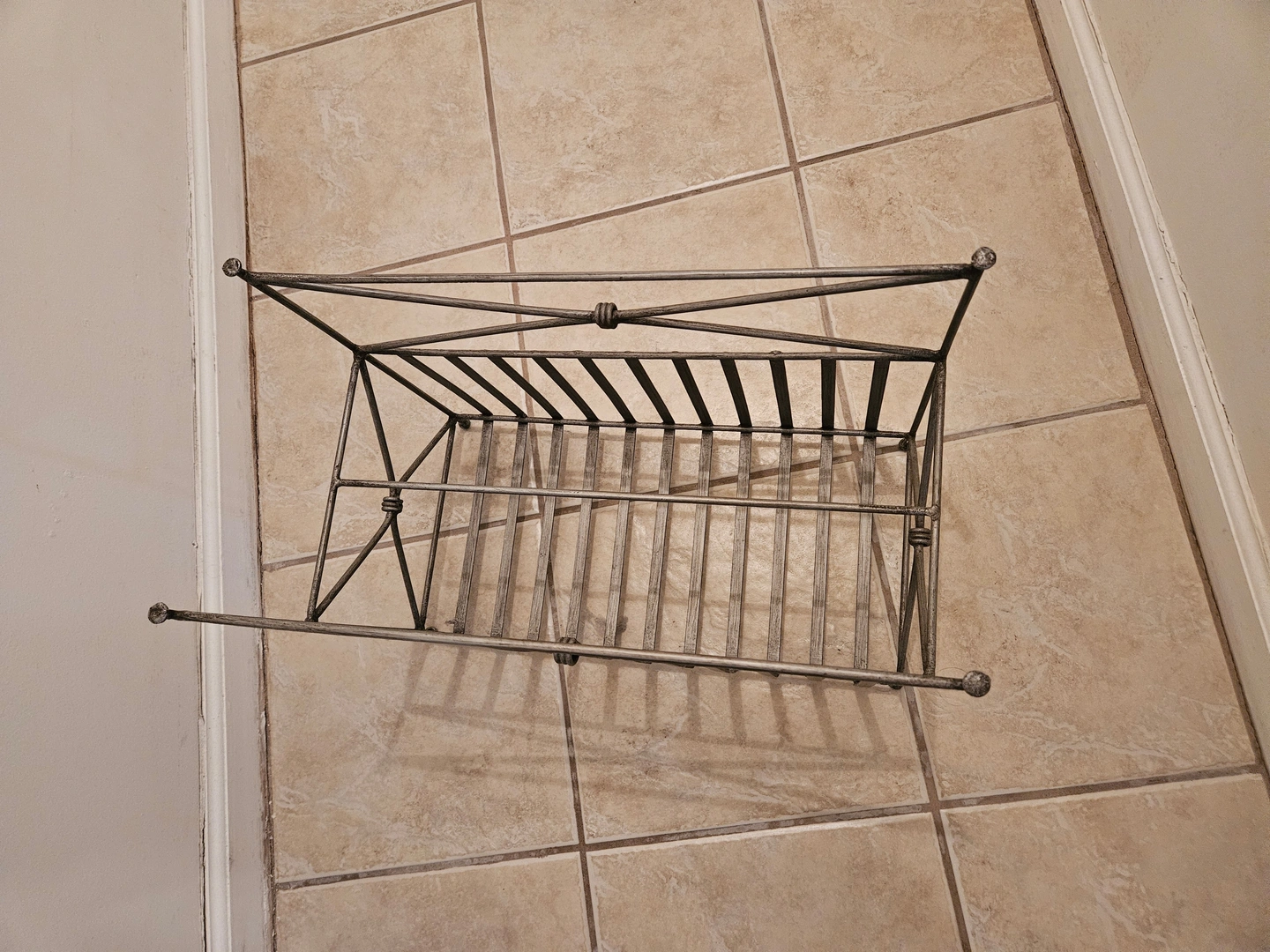 I'm selling a metal magazine rack in 90% new condition, original bought from Pier 1 at $125.00, it's size is 19 x 18 x 9 inches, all metal, copper color, on floor style holding a lot of books and magazines.