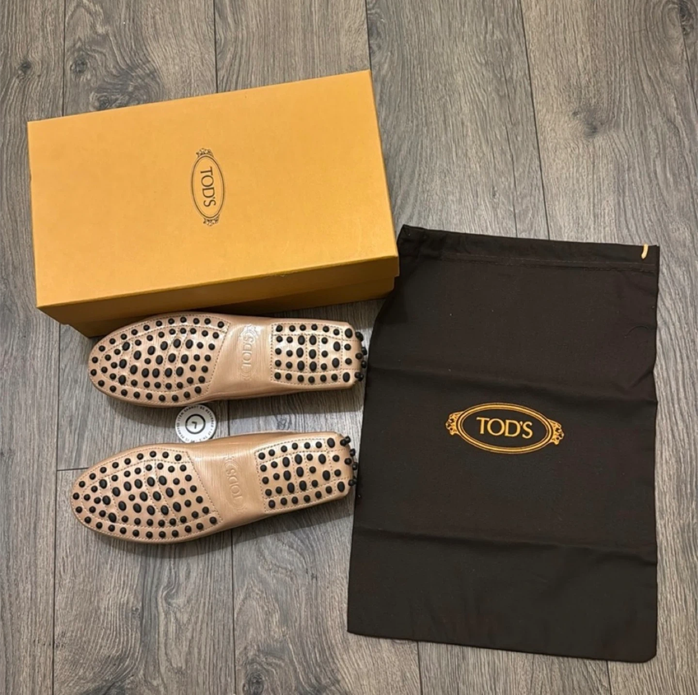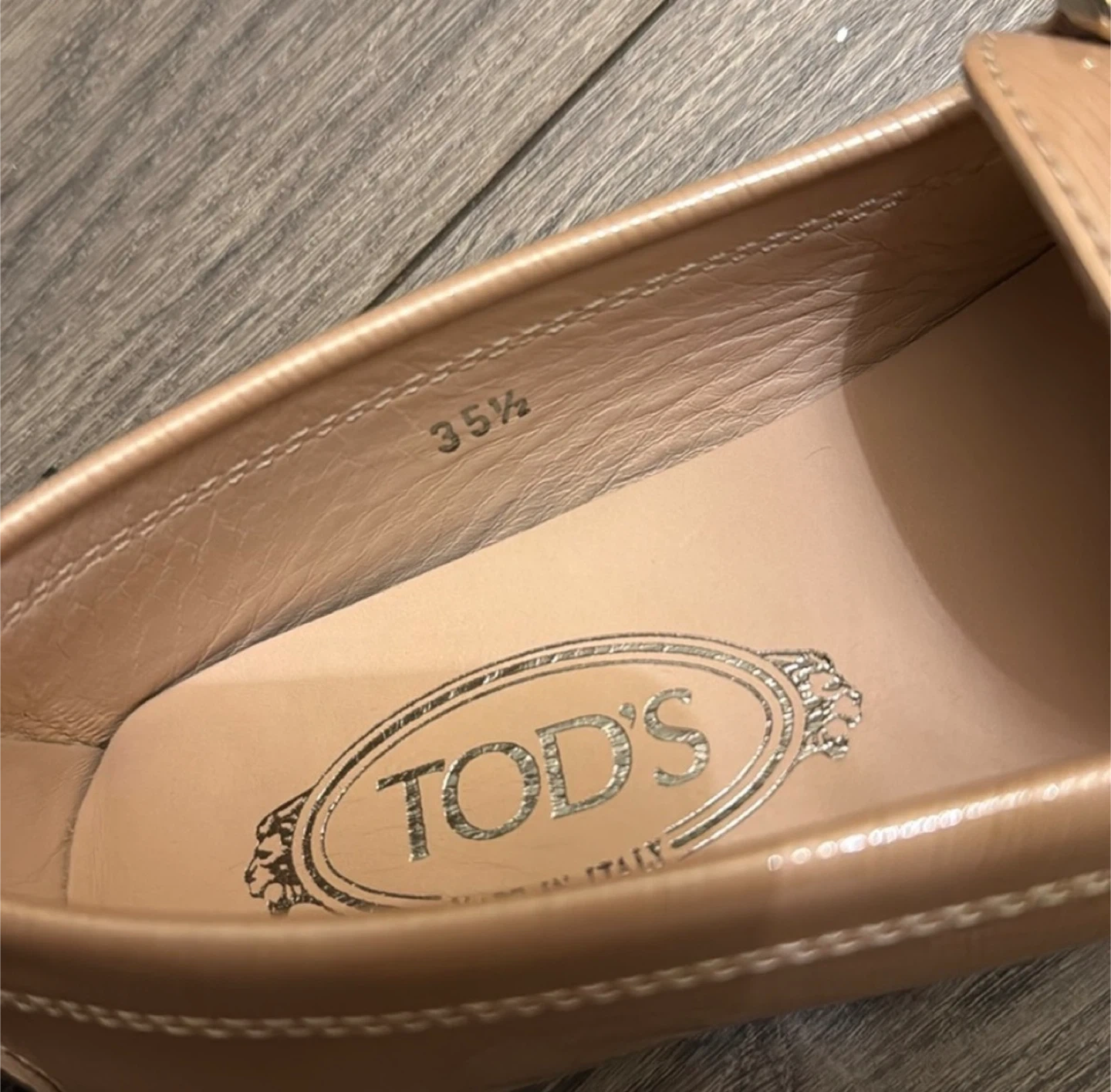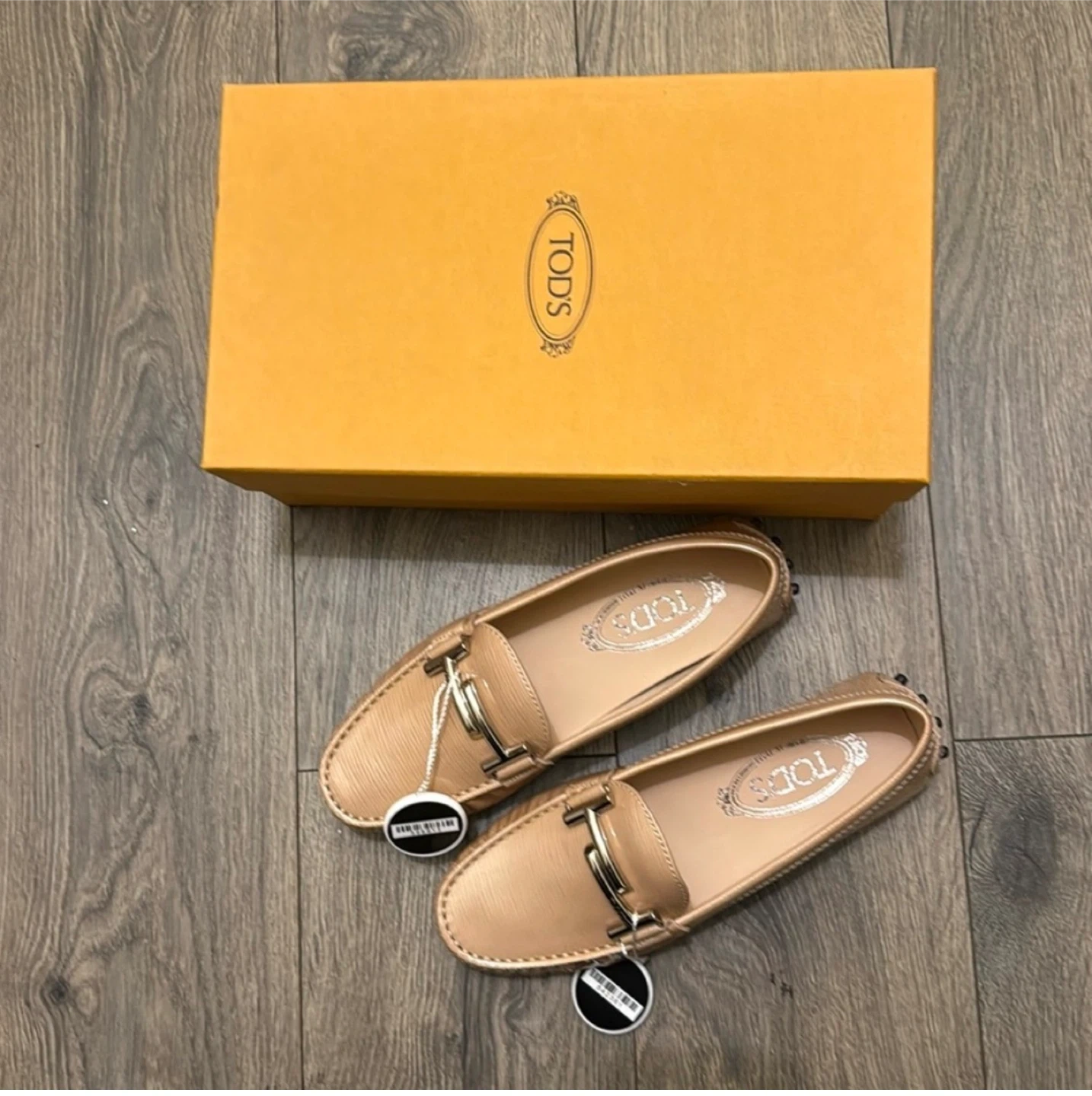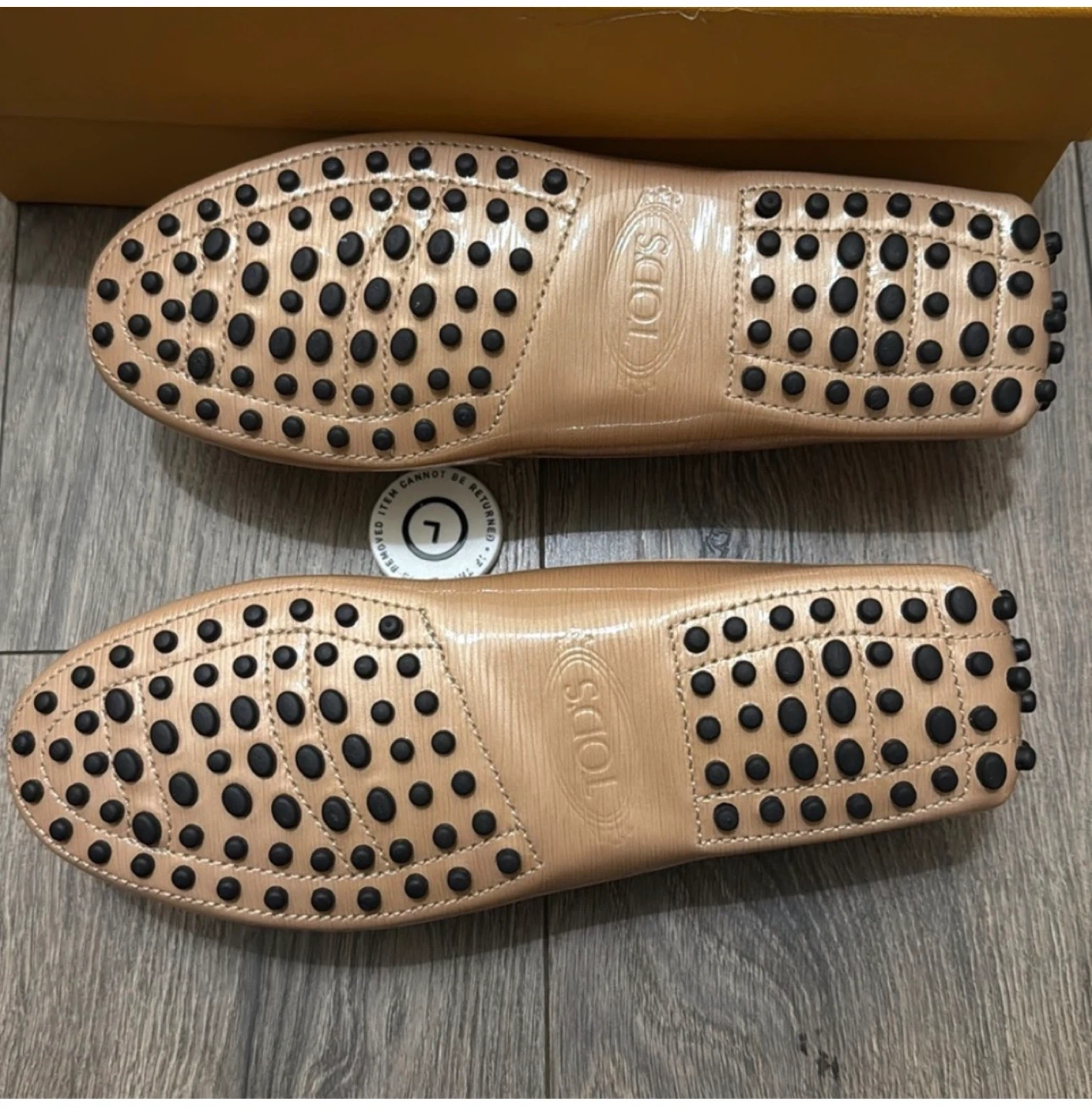 Tod's driving moccasins in a light tan color. Made in Italy. Includes original box and dust bag.