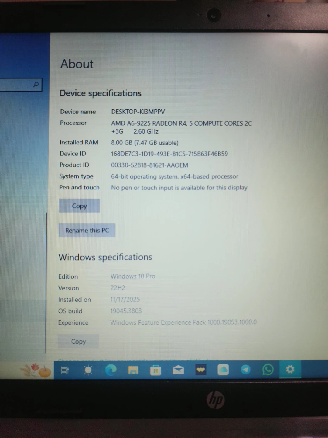 Selling an HP 255 G7 Notebook PC. It comes with: No Charger