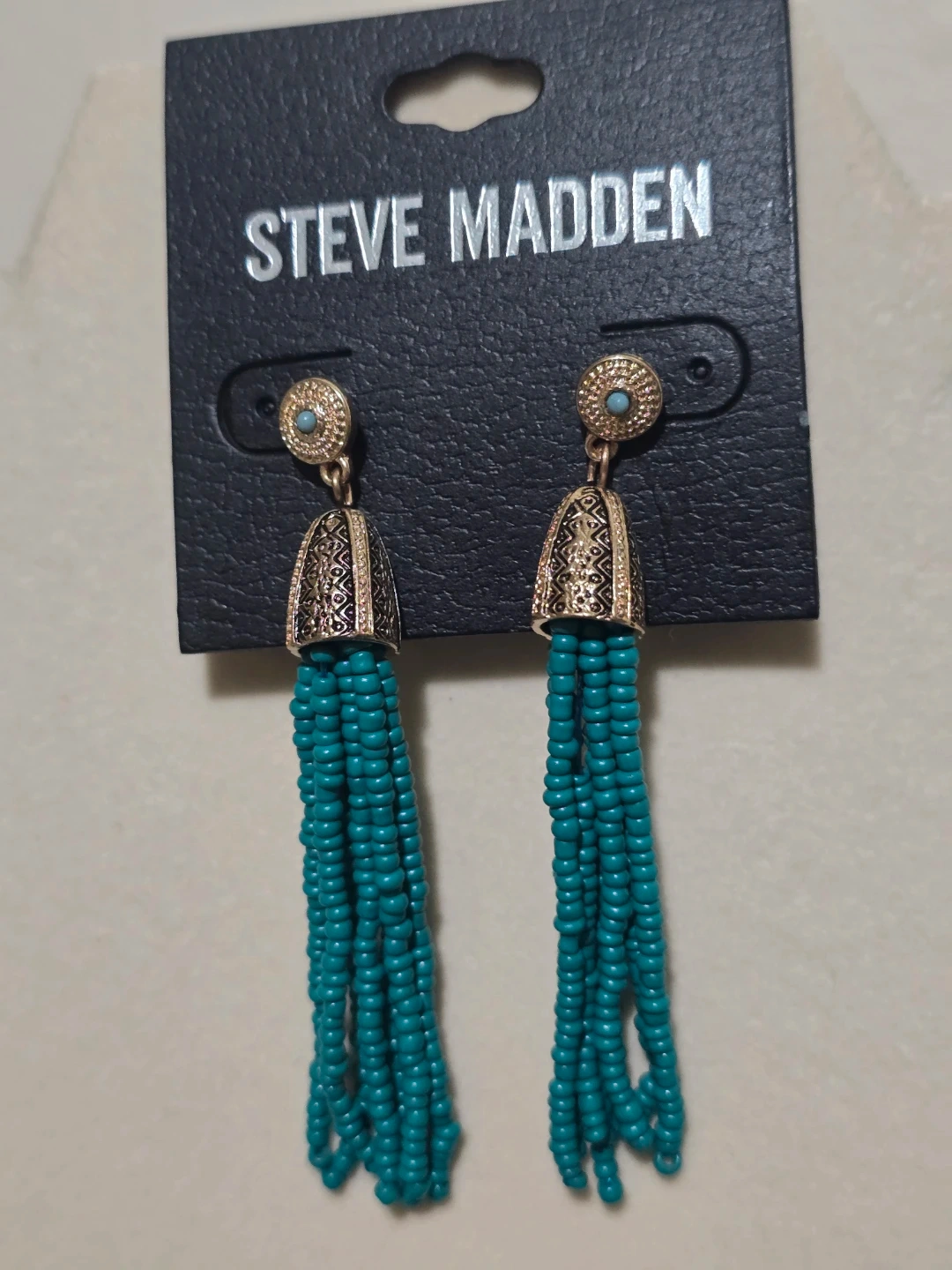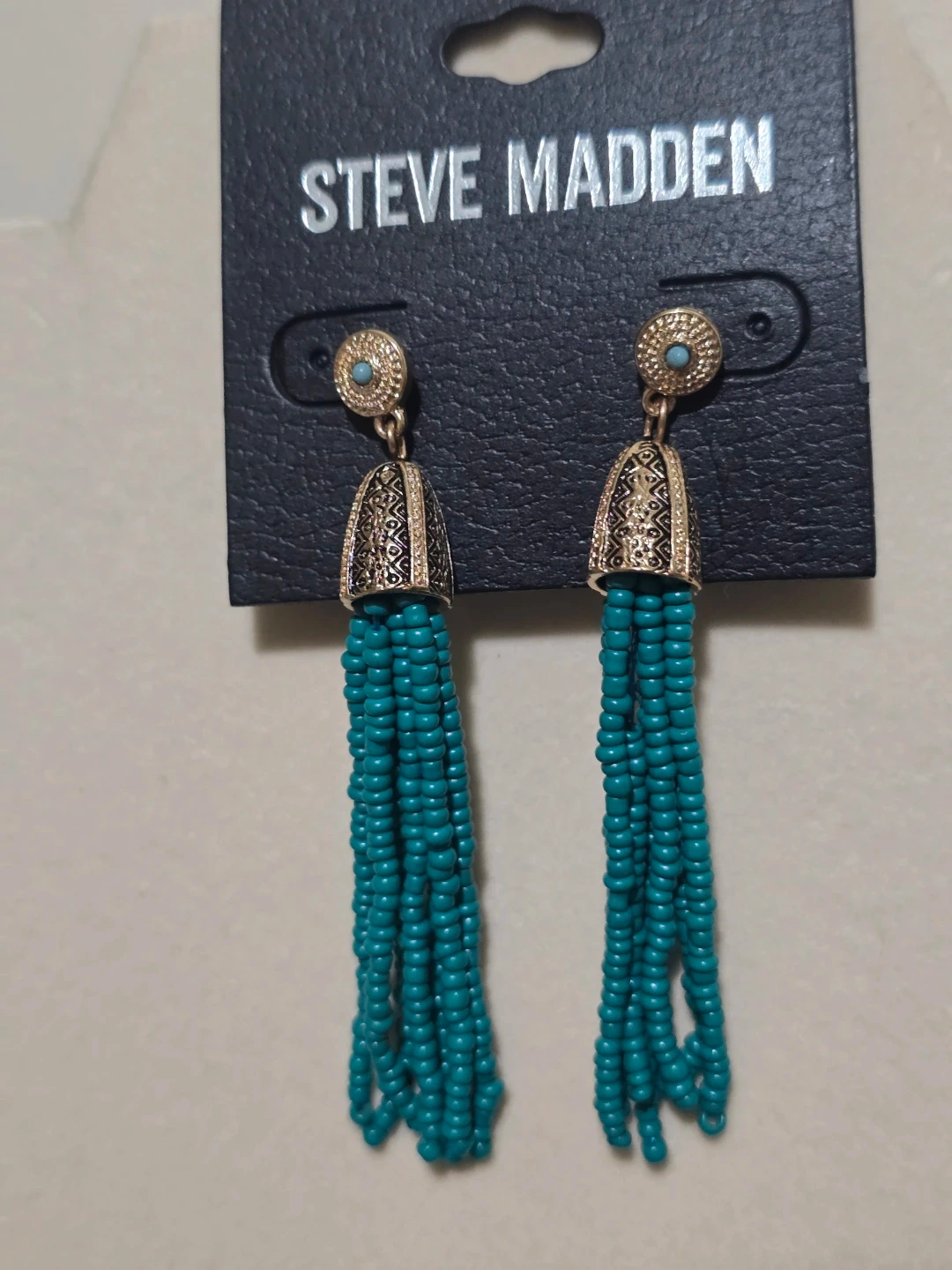NEW Steve Madden Turquoise Beaded Tassel Earrings - Boho Style