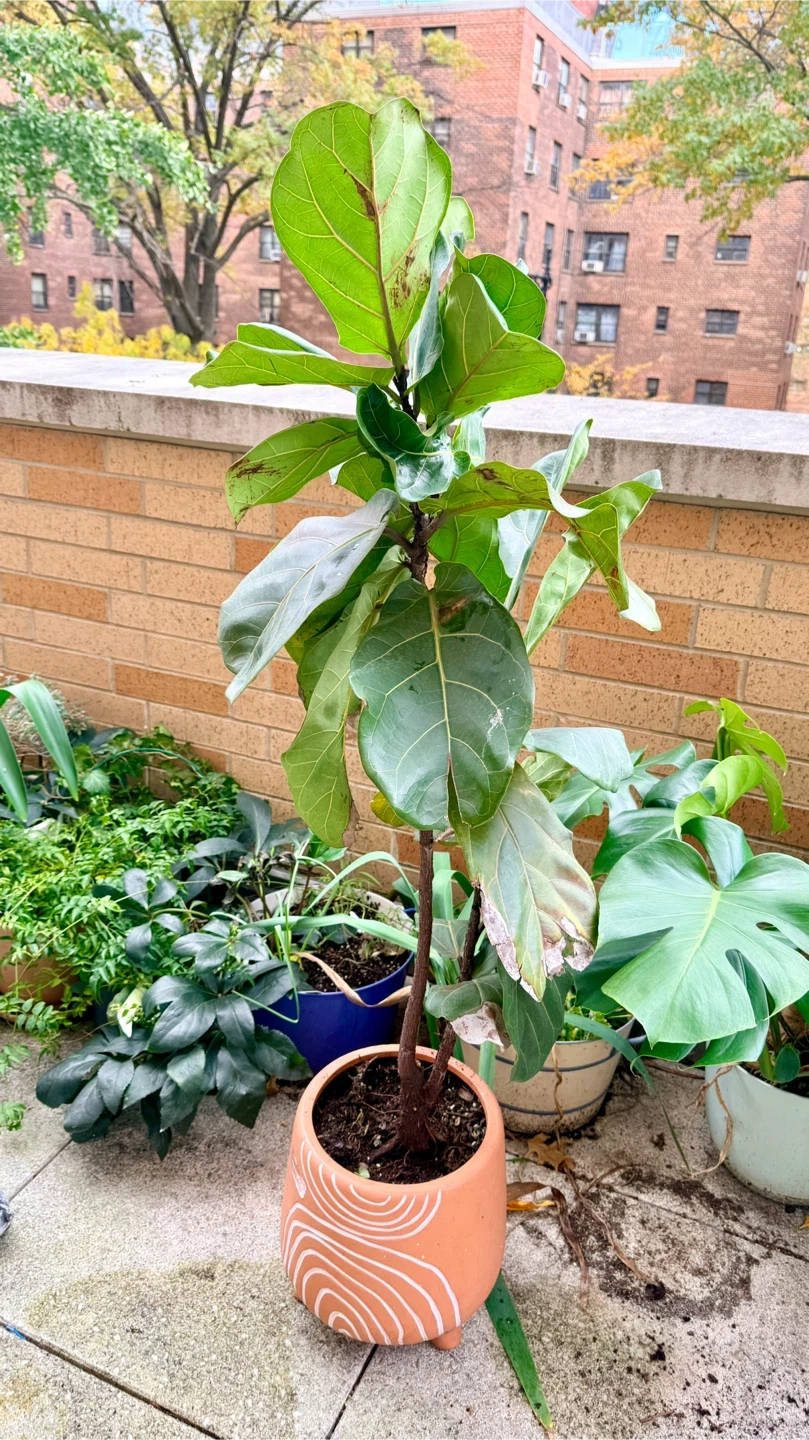 60I have a fiddle leaf fig tree in a cute pot! It's a vibrant green and would look great in any home. It's a good size and has been well cared for