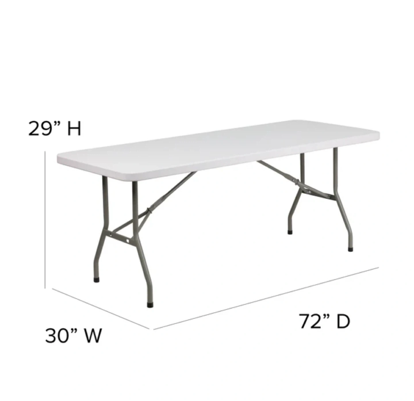 401Selling 4 gently Lifetime 6-foot fold-in-half table! It's white and in great condition. This table is perfect for parties, events, or just extra space when you need it. It's lightweight and easy to carry, making it super convenient to set up and take down. The dimensions are 29" H x 72" D x 30" W