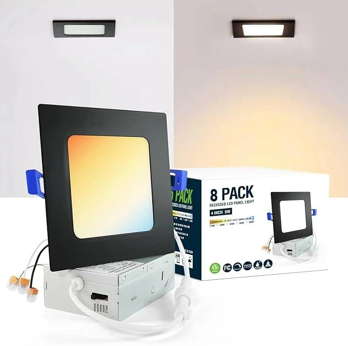 10🔲 4" Square Black LED Recessed Ceiling Light – 5CCT Selectable 5CCT Adjustable Light: Choose from 2700K–5000K (Soft White to Daylight) for perfect lighting in any setting. Quick Canless Installation: Includes junction box for easy, tool-free setup—just connect, clip, and mount in minutes. Safe & Durable: IC-rated for direct contact with insulation. Features anti-glare, scratch-resistant design, corrosion-resistant aluminum housing, and excellent heat dissipation. Modern Square Trim: Sleek, contemporary look enhances any space with stylish black finish and clean lines.