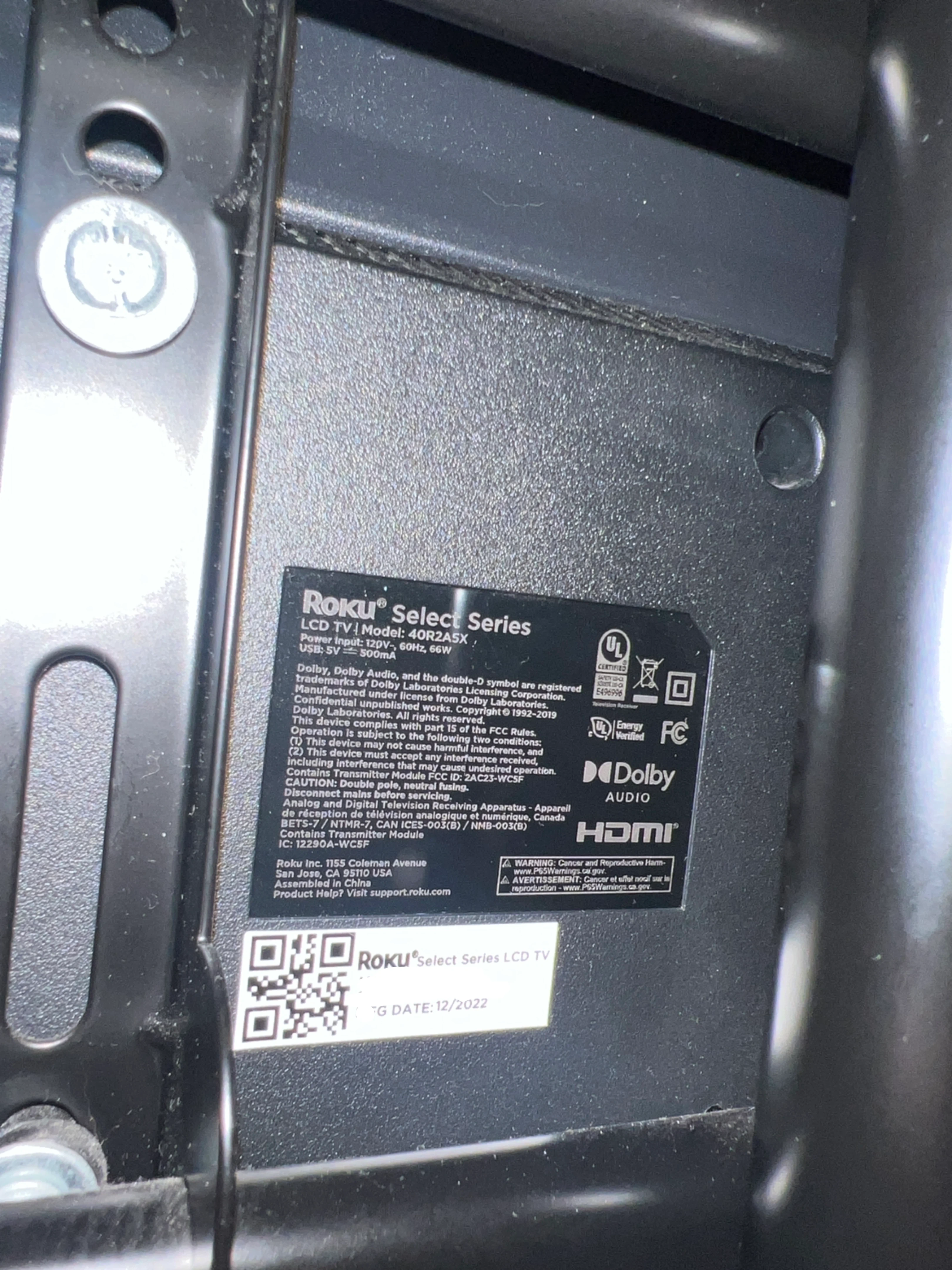 65Selling a Roku - 40" Class Select Series Full HD Smart RokuTV. It comes pre installed on a very sturdy tempered glass base swivel stand, but includes all necessary components for the original stand as well. Remote and manual also included! The manufacturing date is December 2022. Tv was originally $229 Stand was originally $35 No box, sorry!