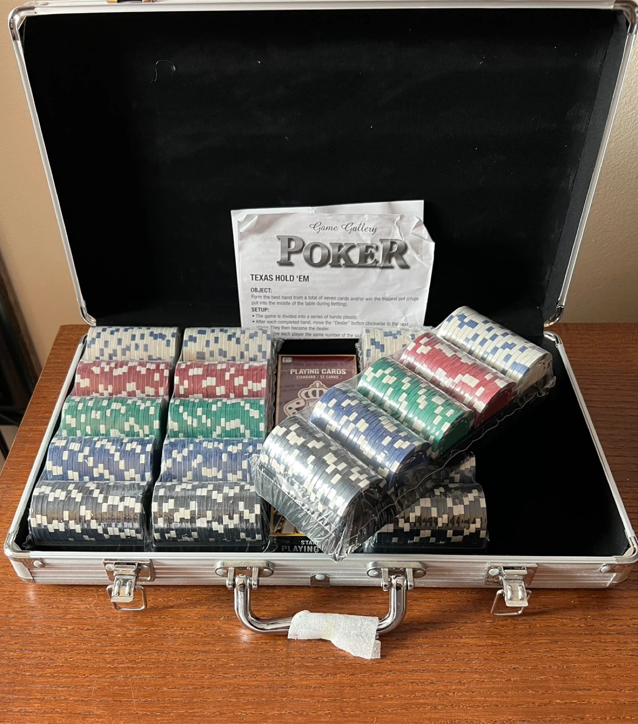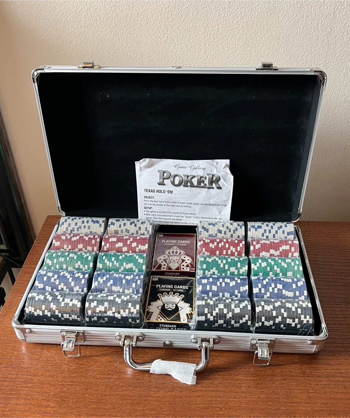 55New/never used - Poker chips/trays and cards are new in sealed packaging. Includes 400 poker chips and 2 decks of cards, and instructions for Texas Hold’em in an aluminum carrying case. Set with case weights 13 lbs. Pick up only, near Astoria Park - Queens NYC 11102 Only Cash (preferred) or Venmo for payment Check out my other listings!