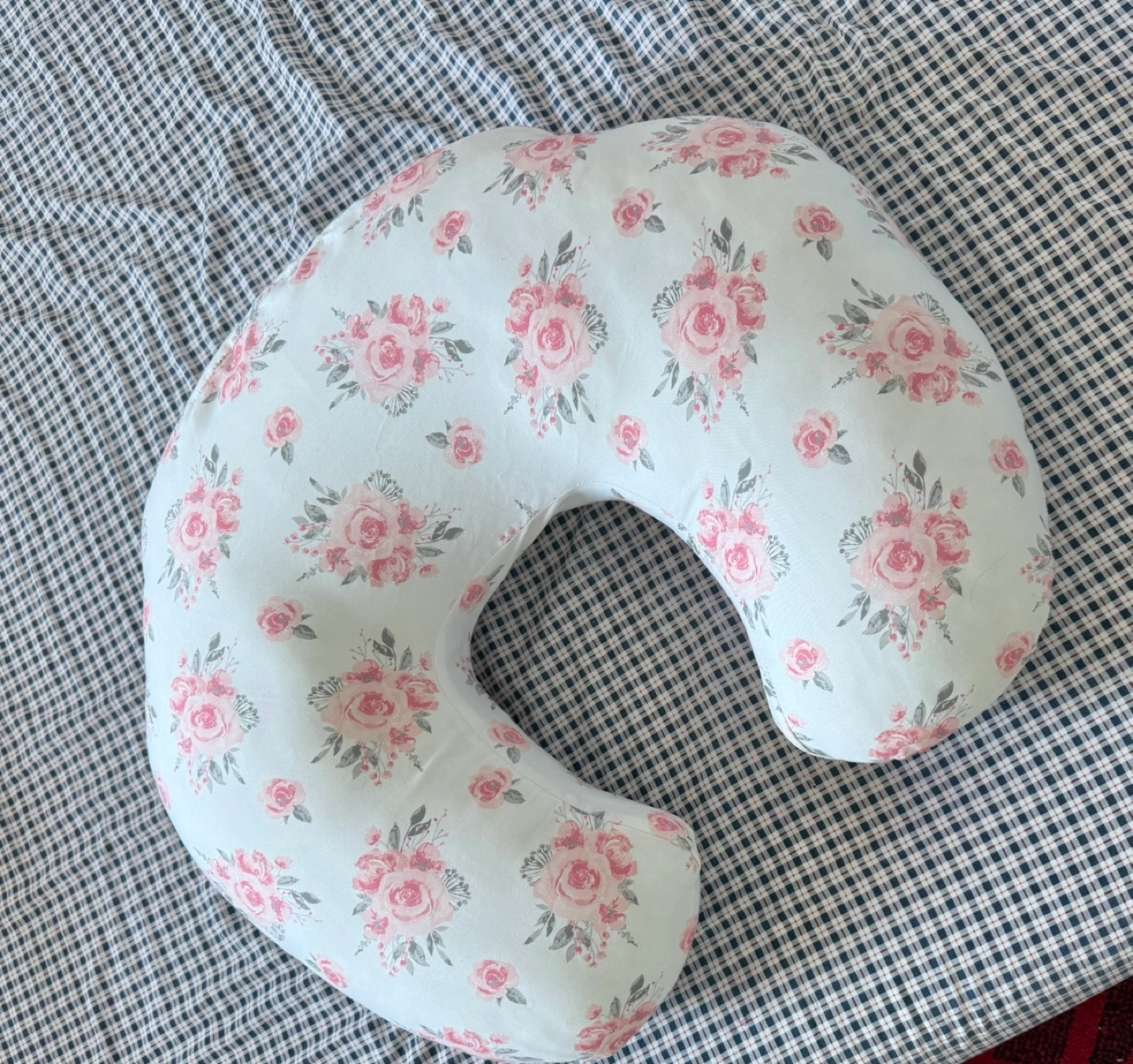 C-shaped nursing pillow. Soft, comfortable fabric. Floral print. Gently used.
