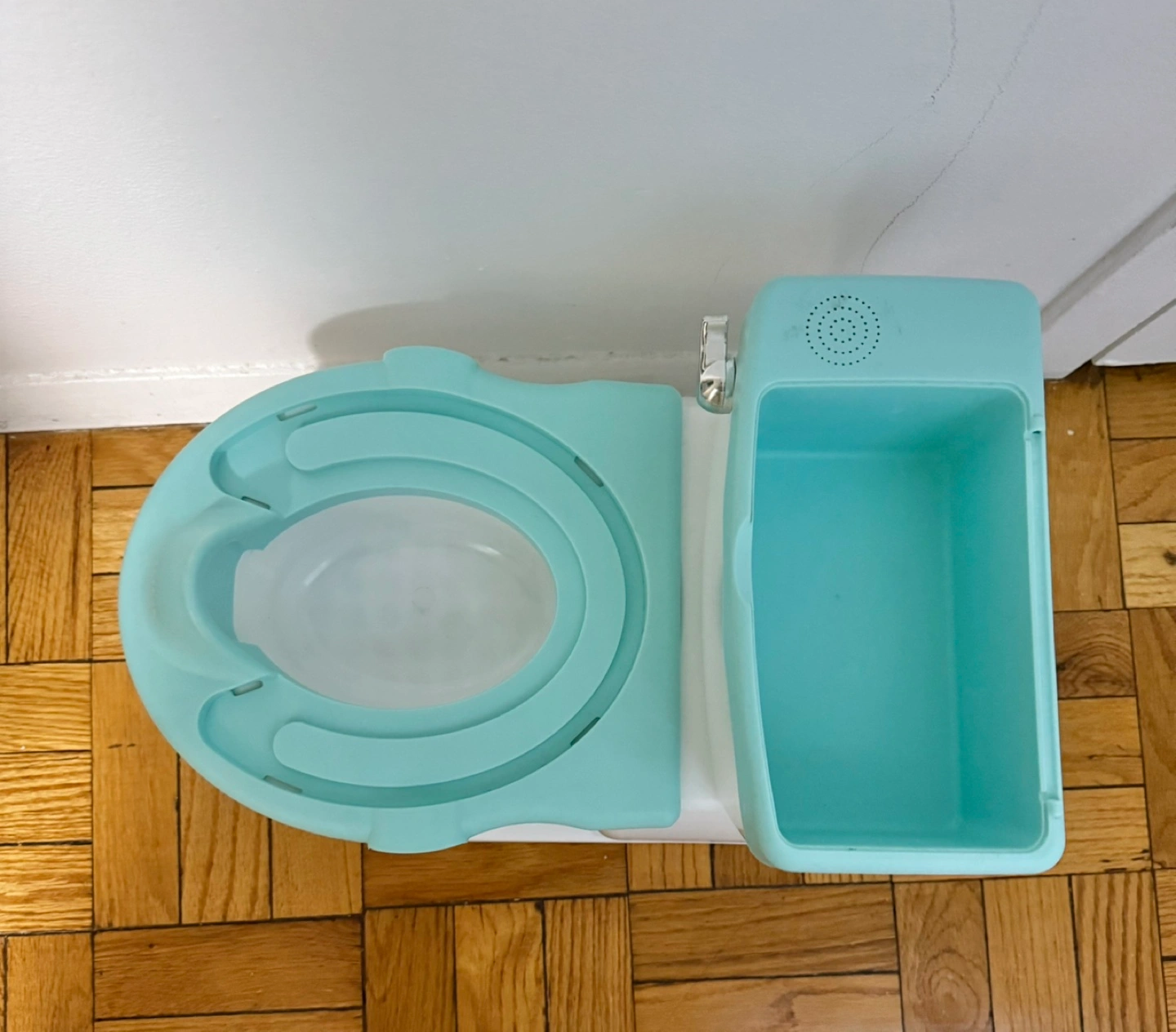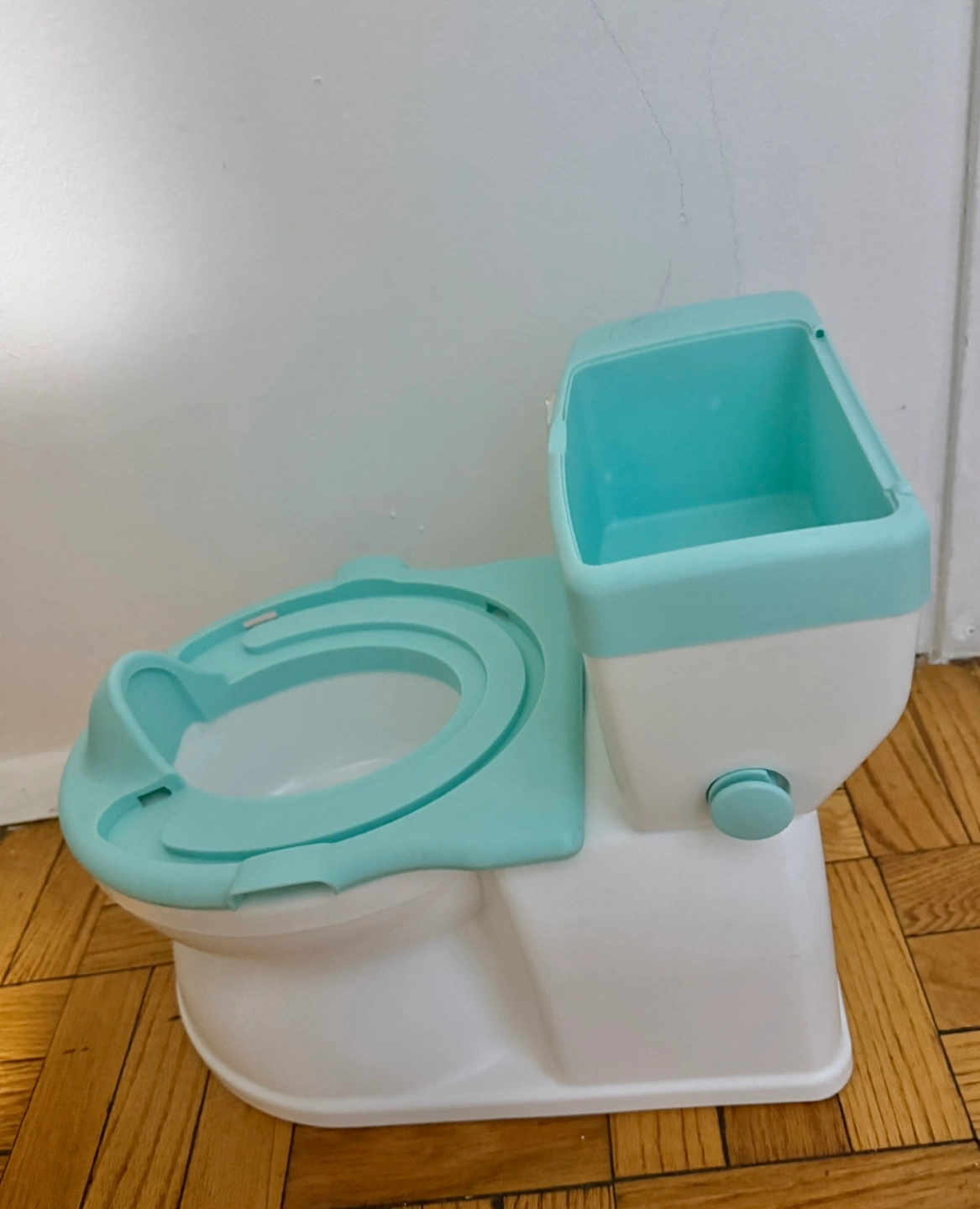 28Adorable mint green and white potty training toilet. Features a built-in storage compartment. Great for toddlers learning to use the toilet.