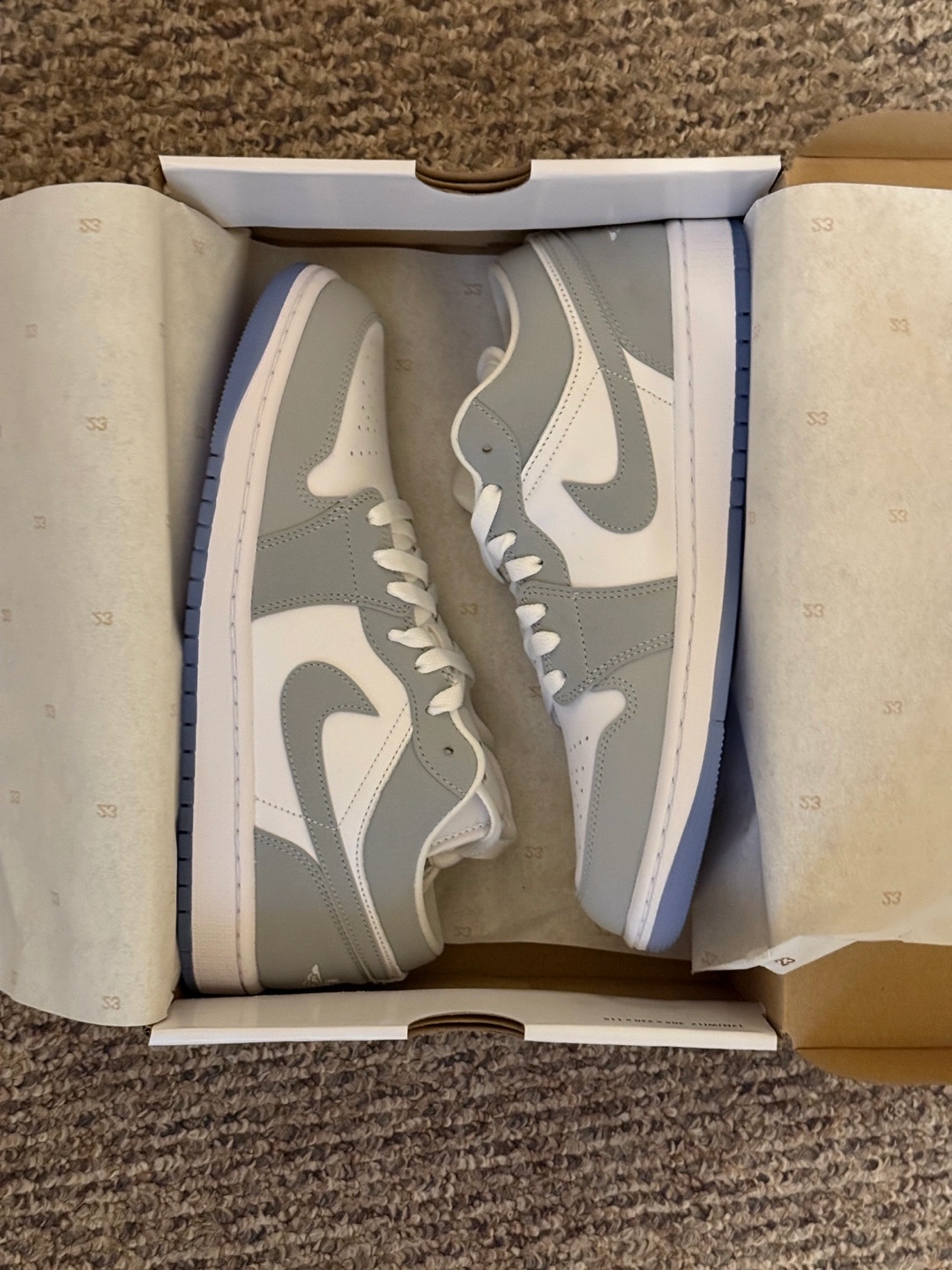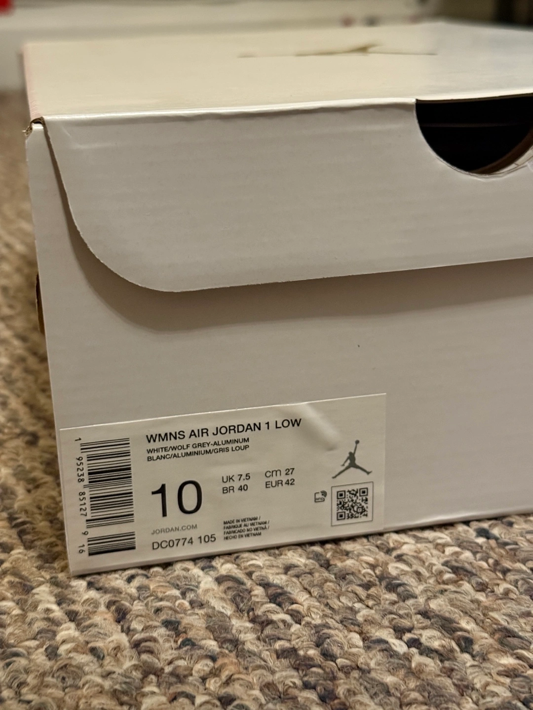 Women's Air Jordan 1 Low Sneakers Wolf Grey (Women's). Grey and white colourway. Size 10US Womans/8.5US Mans/42EUR.New in box.