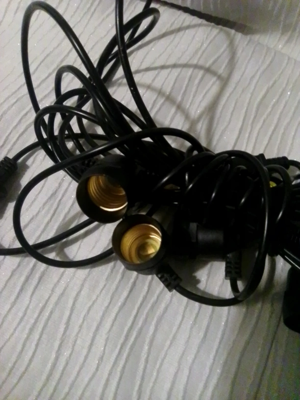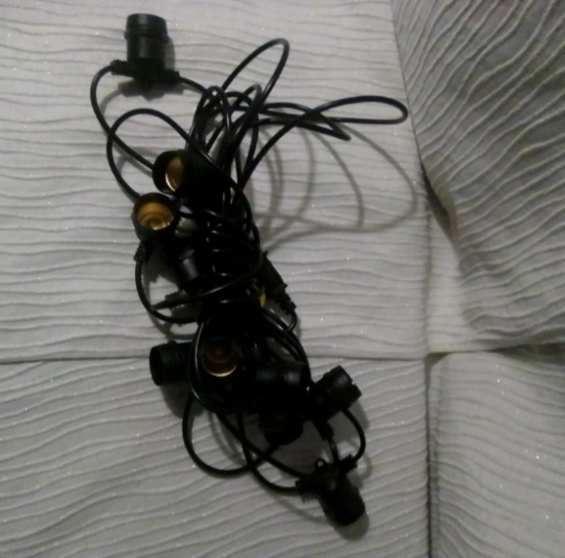 335Ten socket string light set. Black wire and sockets. Perfect for parties or events. Indoor or outdoor use.