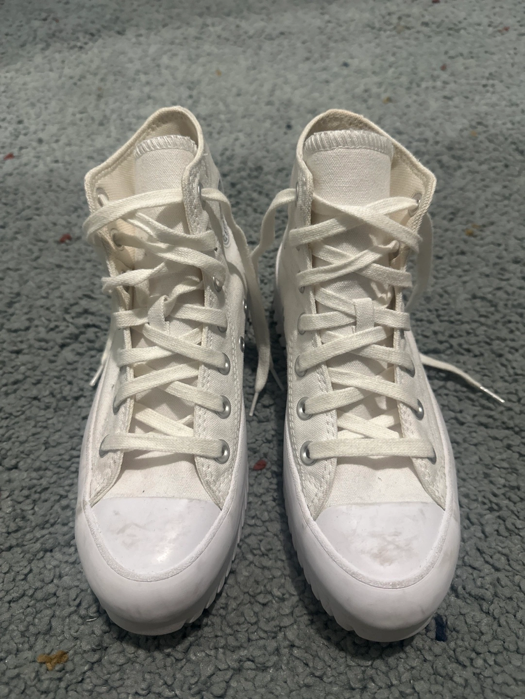 White platform Converse high top sneakers. Nearly new only worn once!