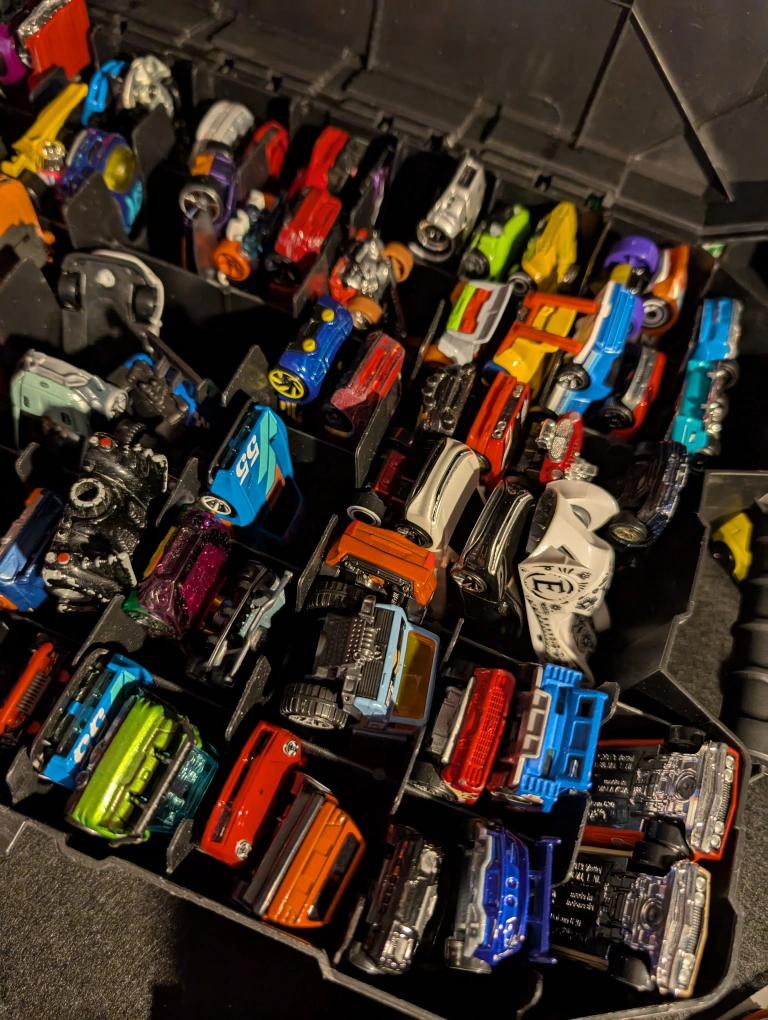 Large collection of Hot Wheels cars. Various models and colours. All in used condition. Case is not included. $1 each car and $30 for whole lot.