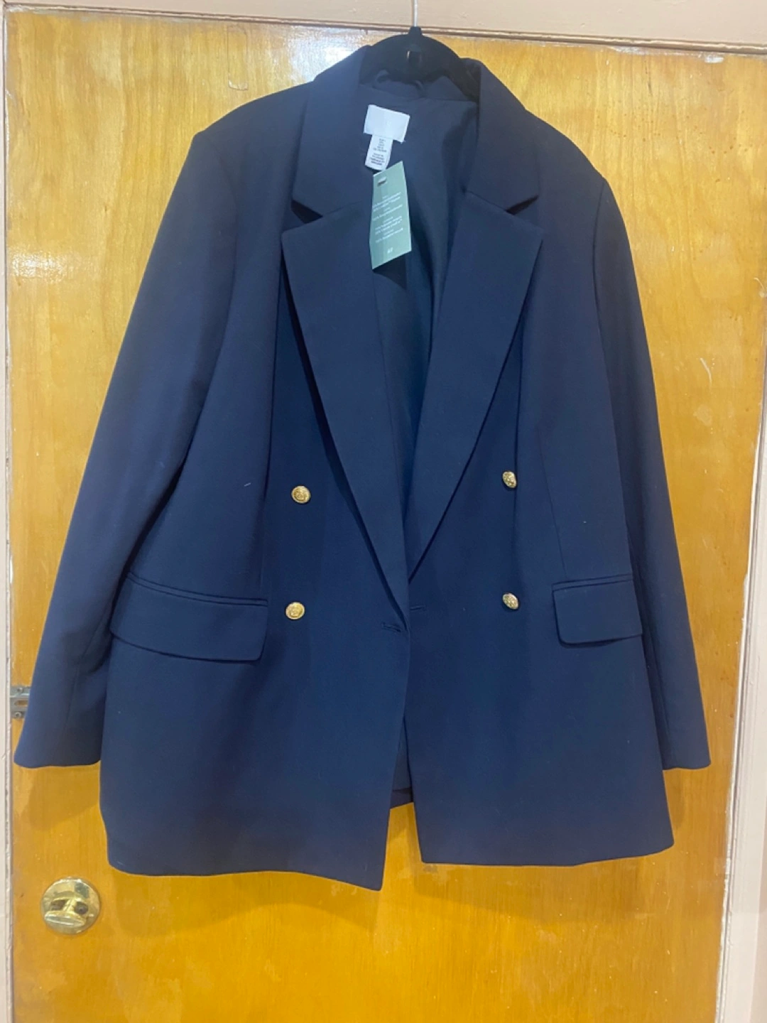 Navy Blue Double-Breasted Blazer with Gold Buttons - Size 40