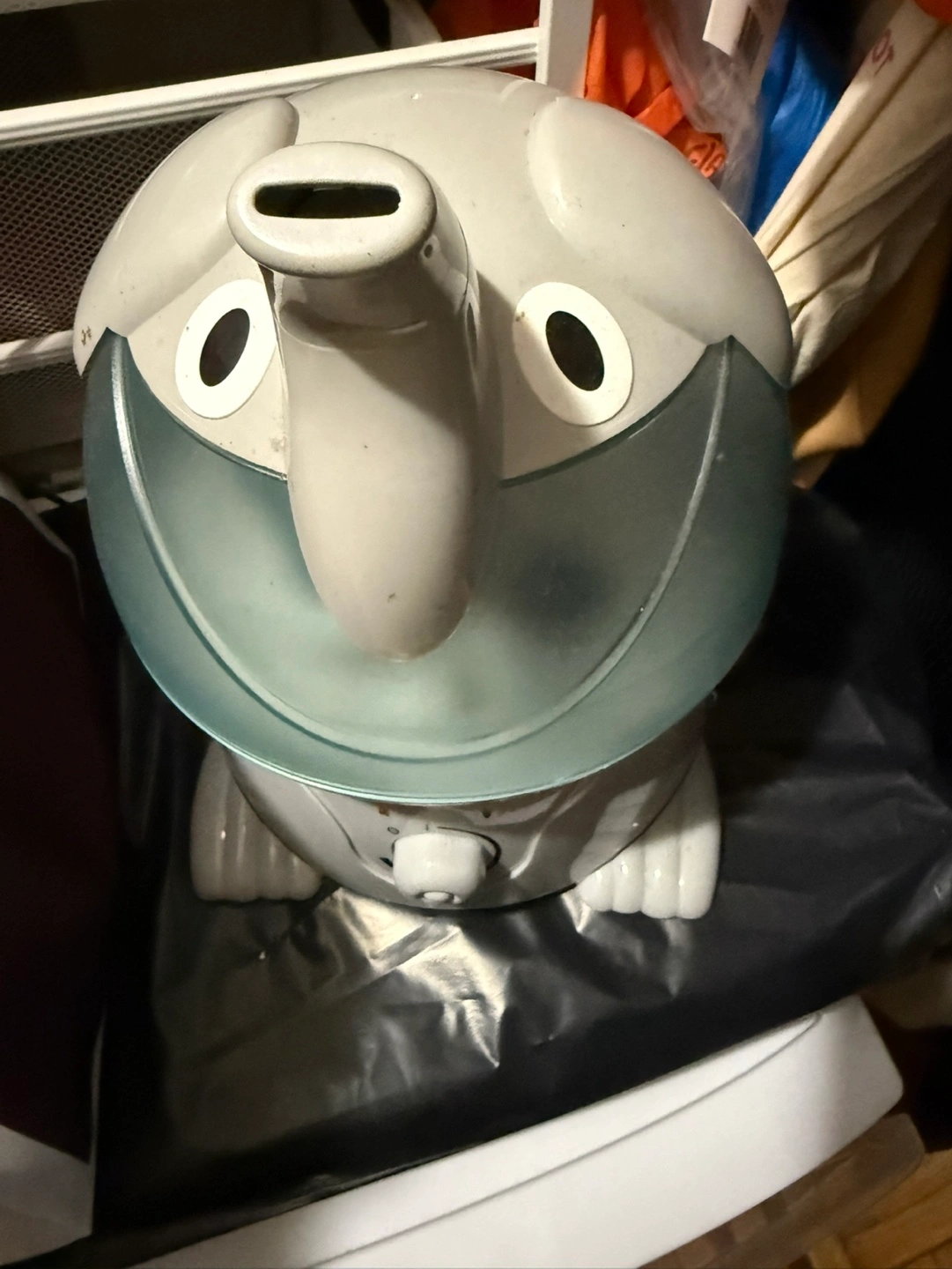 Cute elephant-shaped humidifier. Great for kids' rooms. Used condition. Simple operation. Crane humidifier.