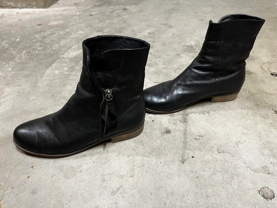 Pair of black leather ankle boots. Side zipper closure. Low heel. Great condition, purchased in Australia, amazing quality.