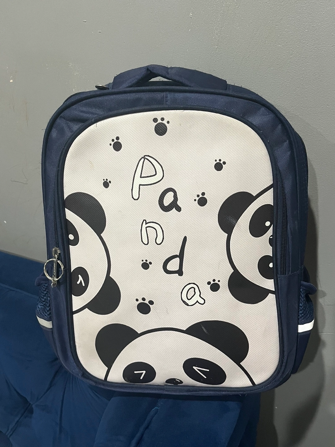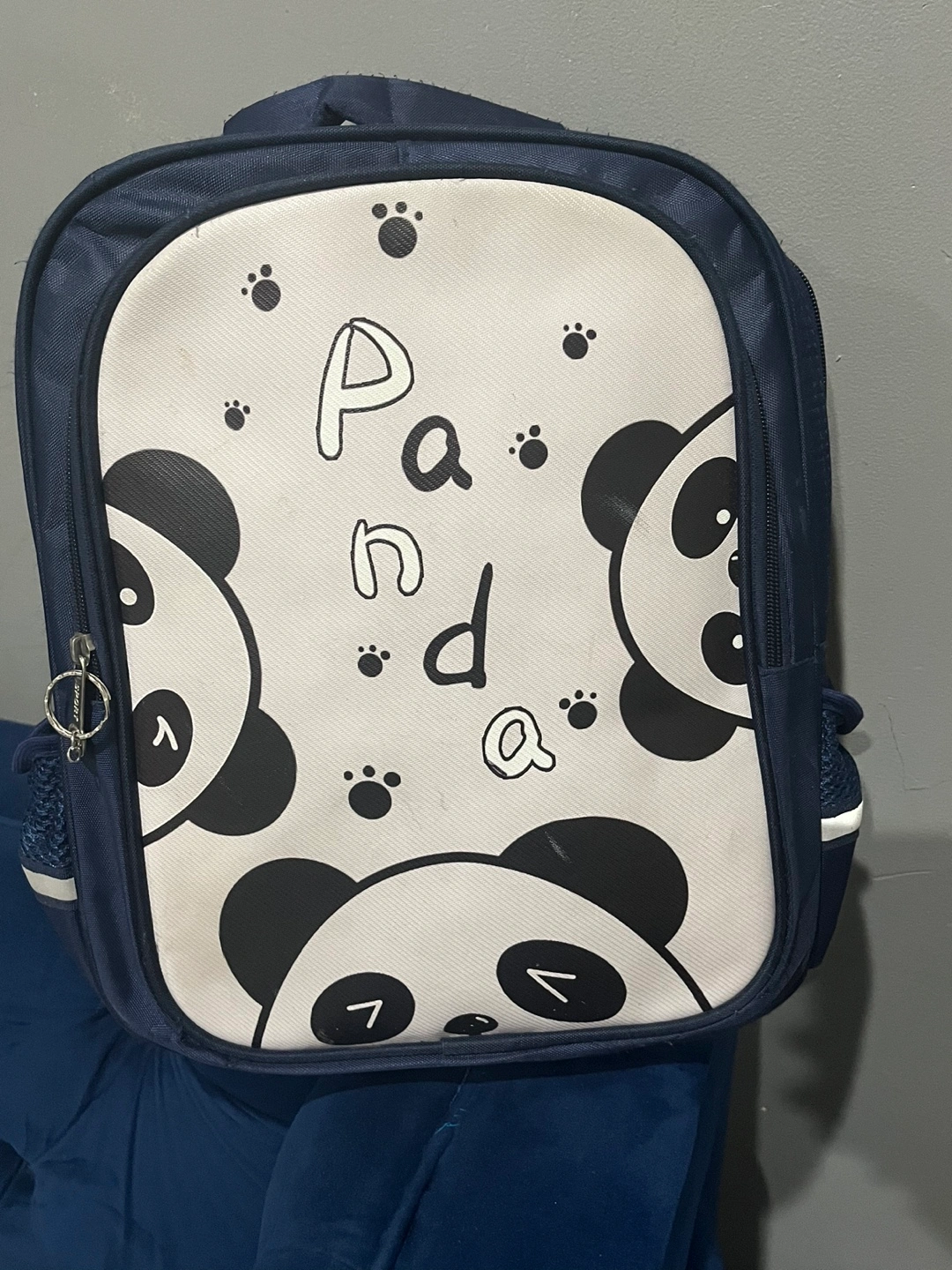 73Cute panda backpack. Blue and white. Adjustable straps. Great for preschool or elementary school.