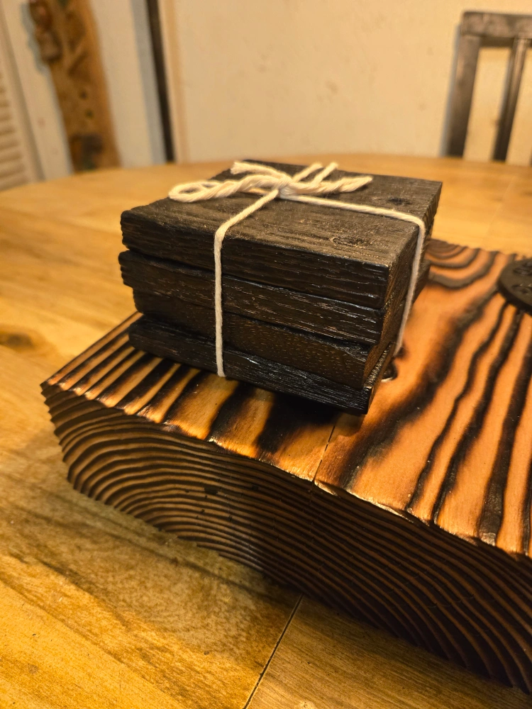 Rustic Farmhouse Table Lamp with Wood Base and Coasters