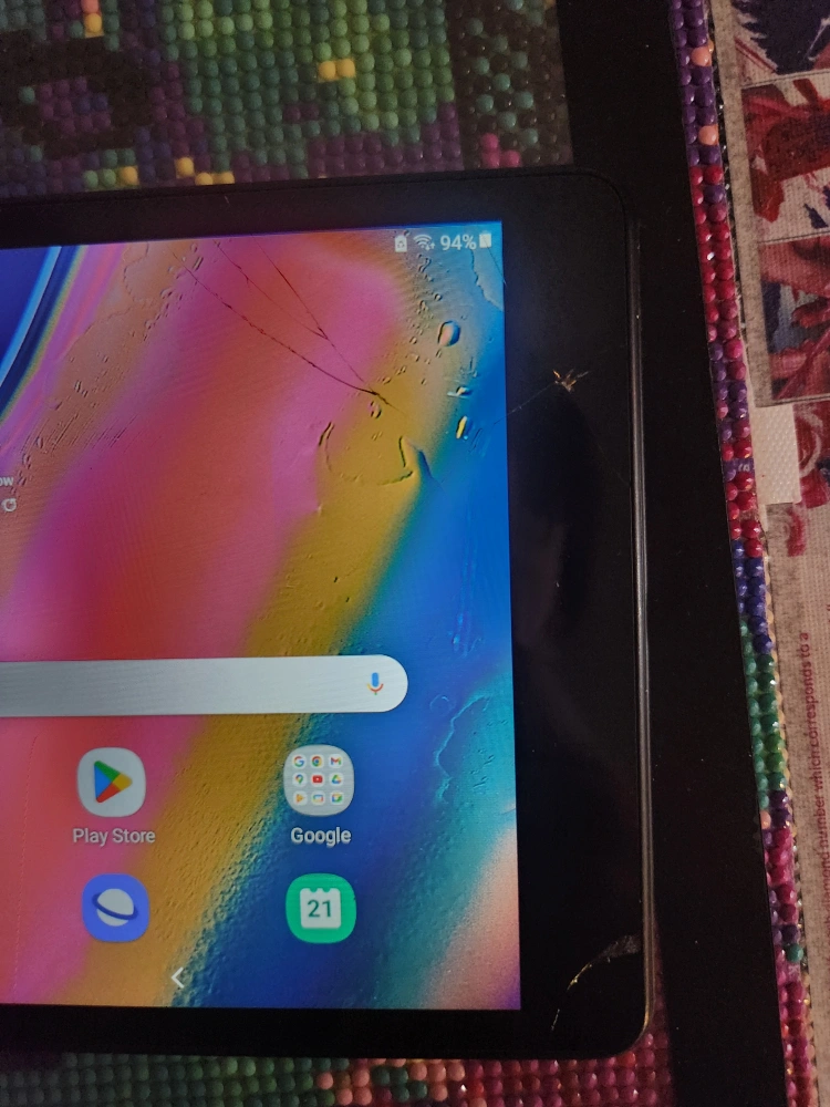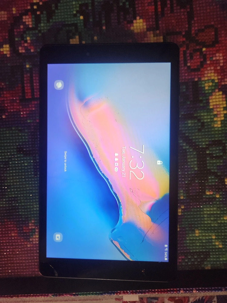 Used Samsung Galaxy Tab A7 tablet. Cracked screen. 10.4 inch display. works fine, cleared, and cracks hsve no loose glass.
