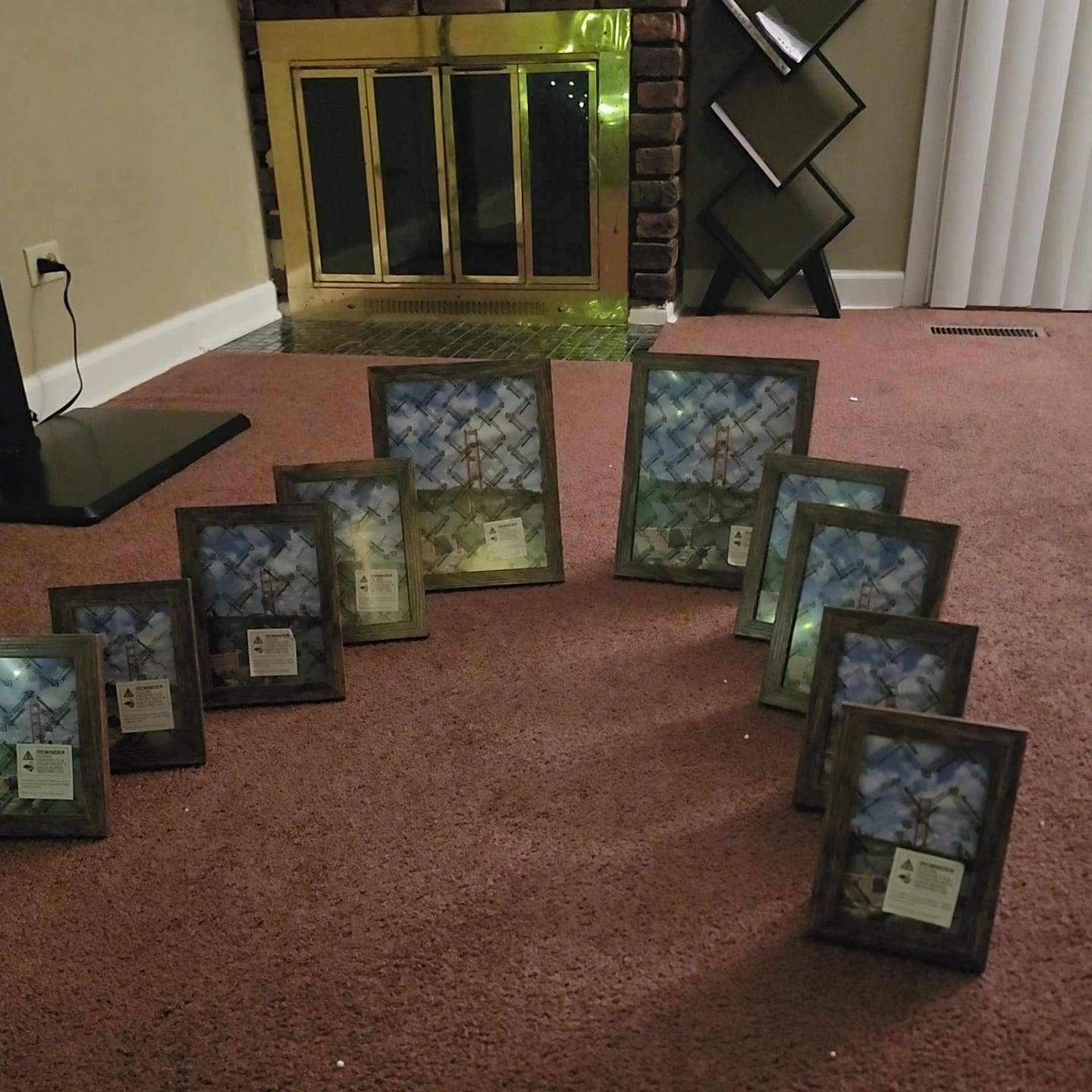 72Ten framed pictures of the Golden Gate Bridge. Perfect for a home or office. Pictures are in good condition. Wooden frames. Varying sizes.