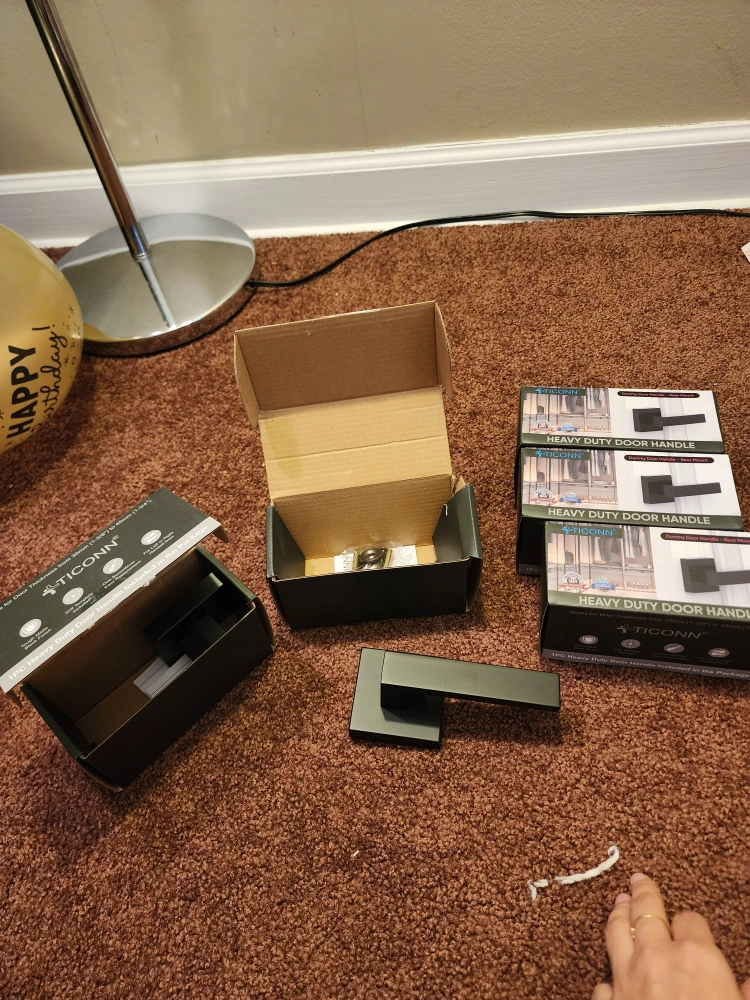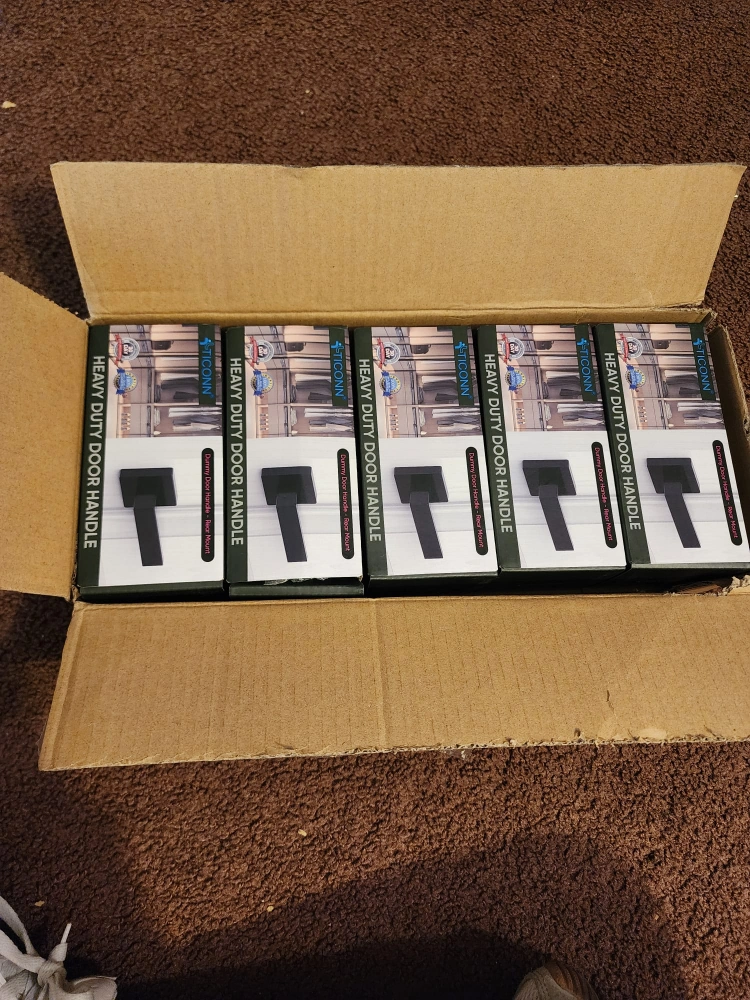 72Seven new, black heavy duty door handles. Individual boxes included. Great for home improvement or contractor use. Solid metal construction.