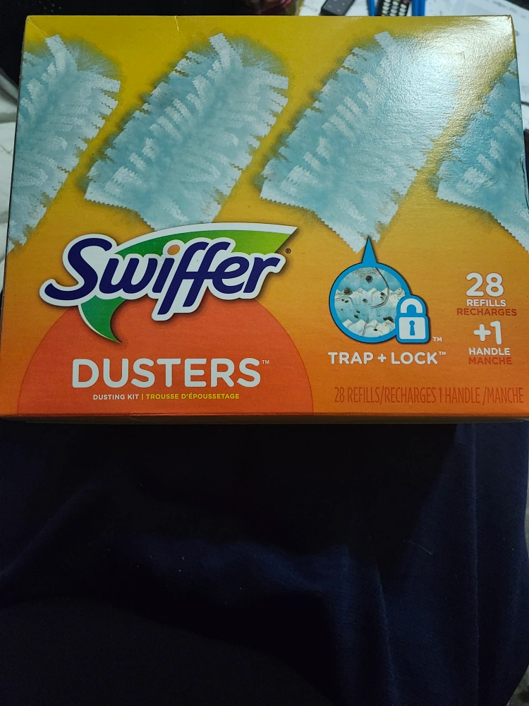Swiffer Duster refills. 28 refills and one handle included. Trap + Lock technology.