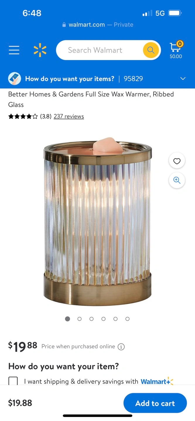 15Full size wax warmer. Ribbed glass design. Features a bronze-colored base. Electric.