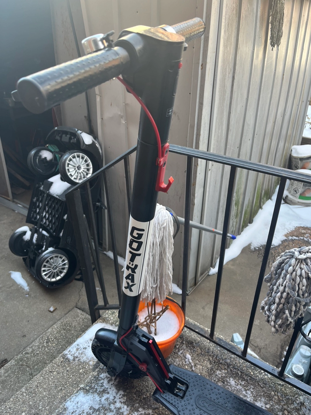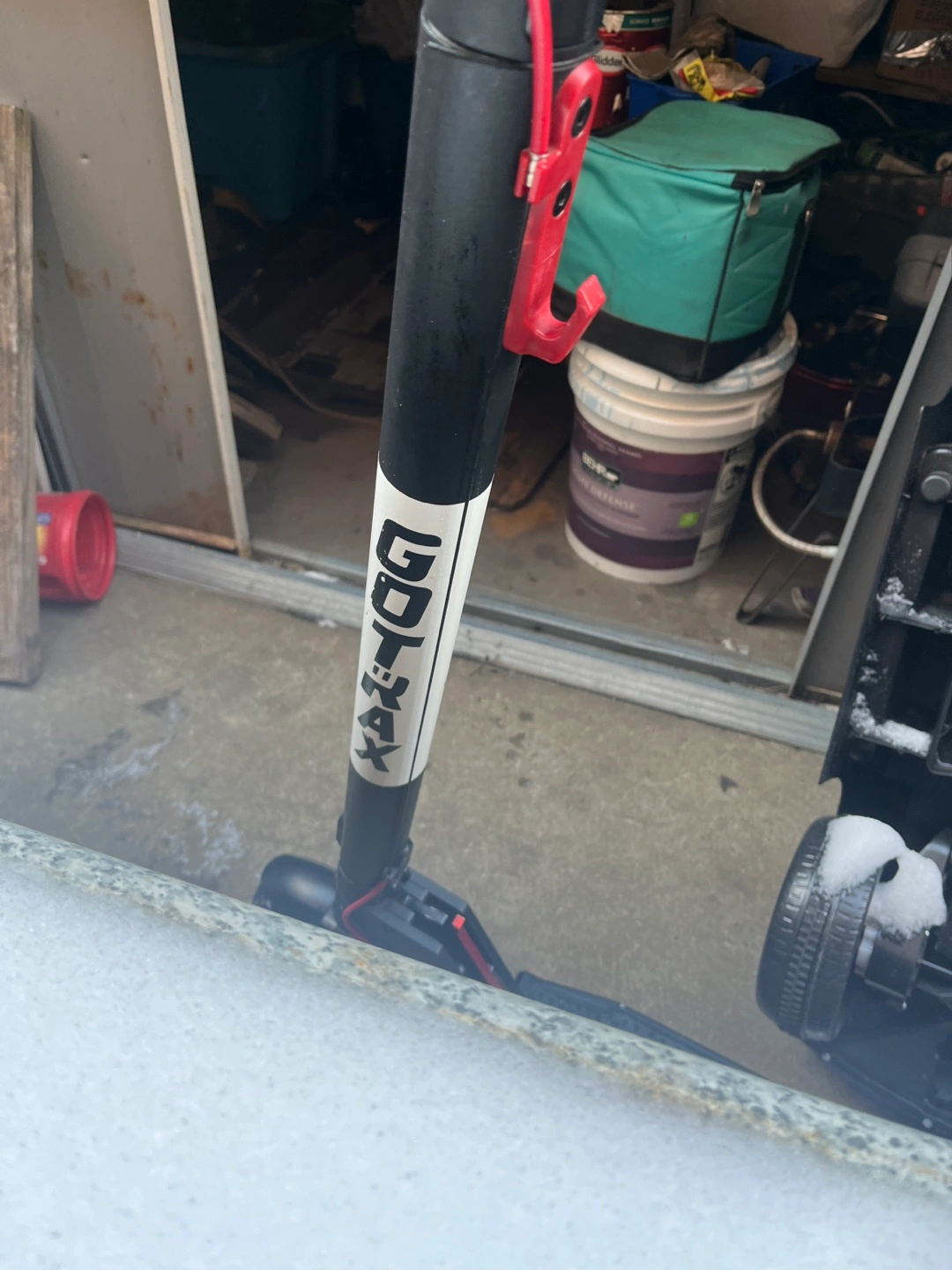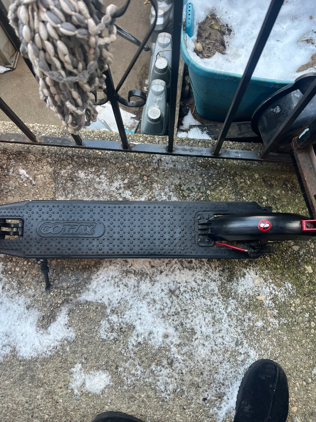 70Used GOTRAX electric scooter. Black frame, red accents. Includes battery indicator. Good condition. I have the charger included. Delivery is 15$ open to trades and offers no lowballs