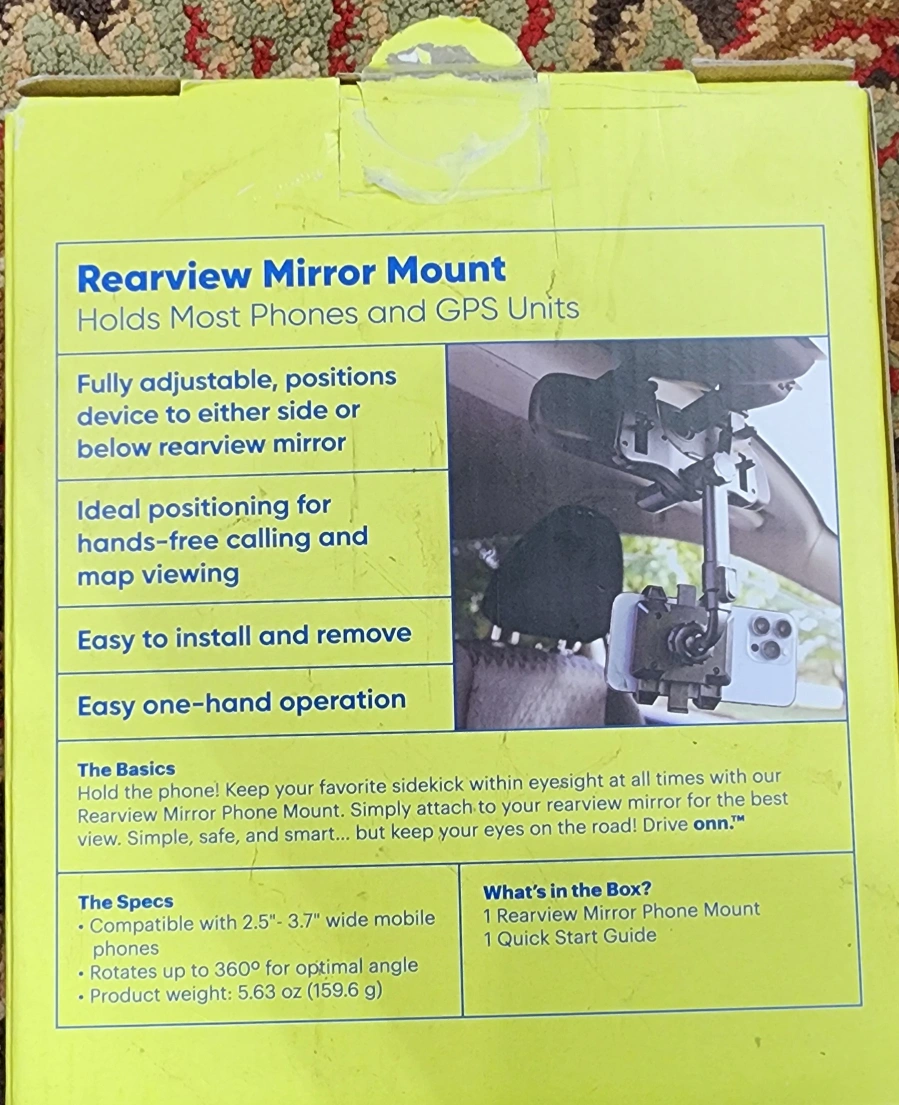 22Rearview mirror phone mount. Adjustable positions. Holds most phones and GPS units. Easy one-hand operation. Simple installation.