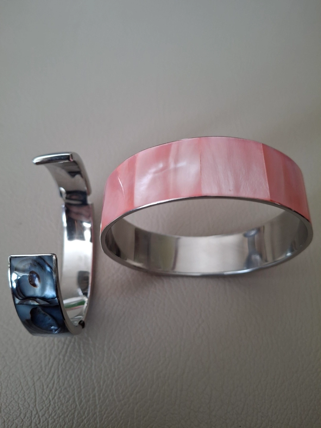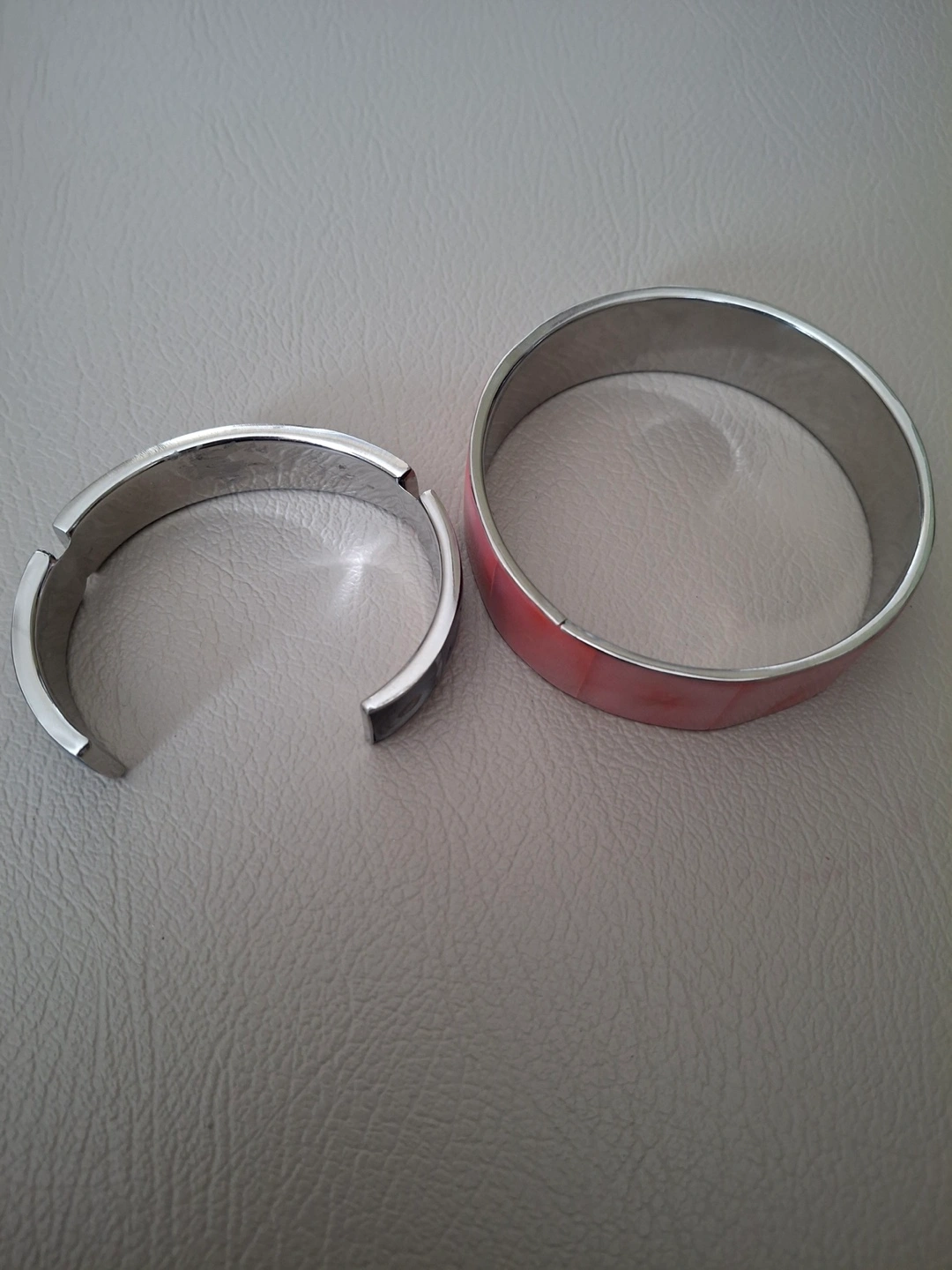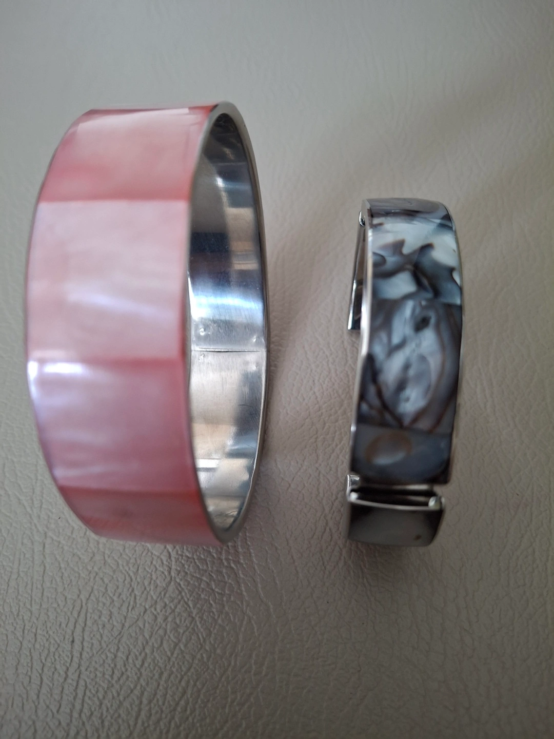 Two bracelets, both 2.5” in the centre. One pink and one marbled. Great condition, like new. Price is for both.