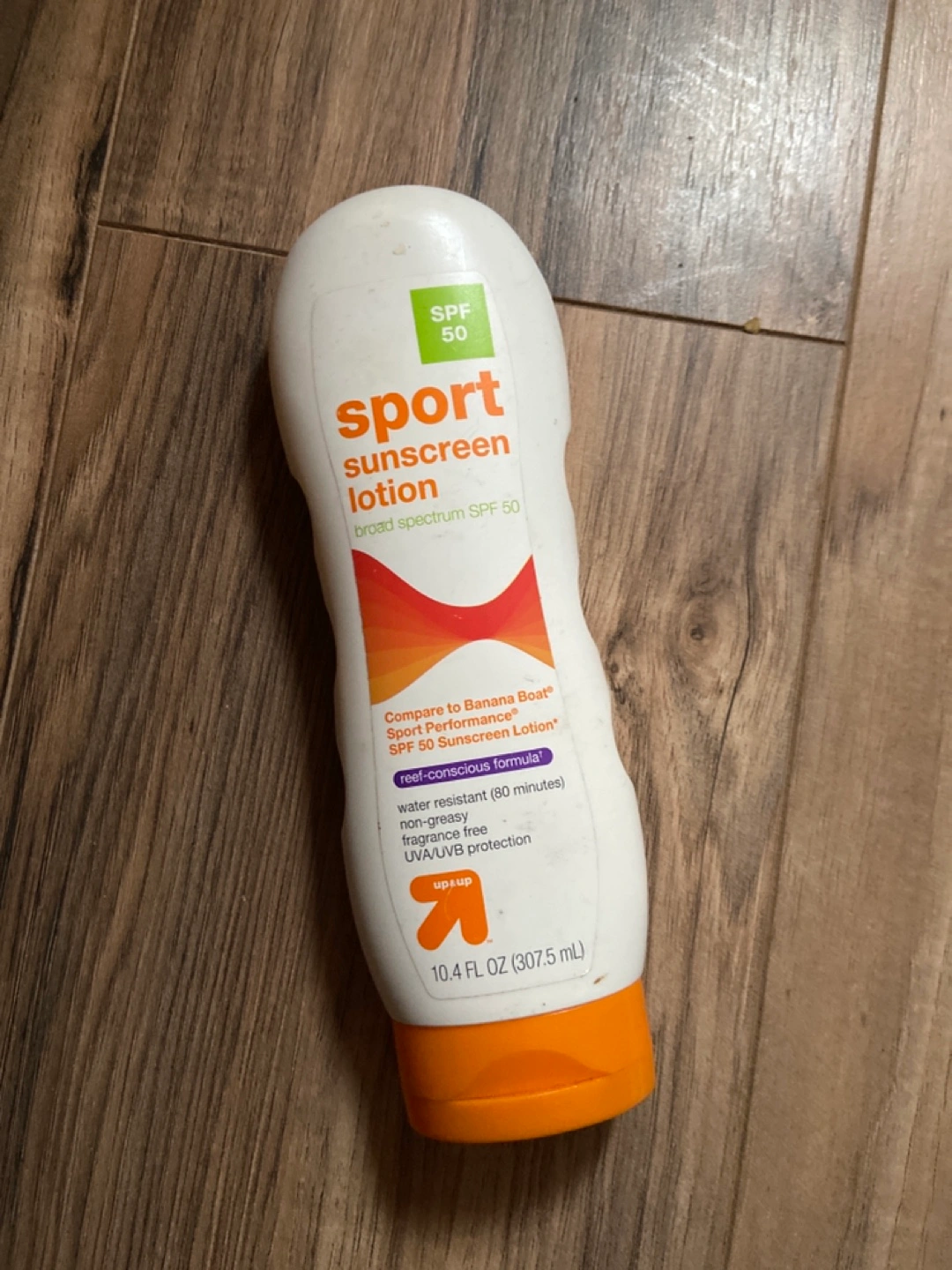 1000+10.4 fl oz bottle of Up & Up Sport Sunscreen Lotion. Broad spectrum SPF 50. Water resistant (80 minutes). Non-greasy. Fragrance free. Compares to Banana Boat Sport Performance SPF 50 Sunscreen Lotion. I use a different brand and no longer need.