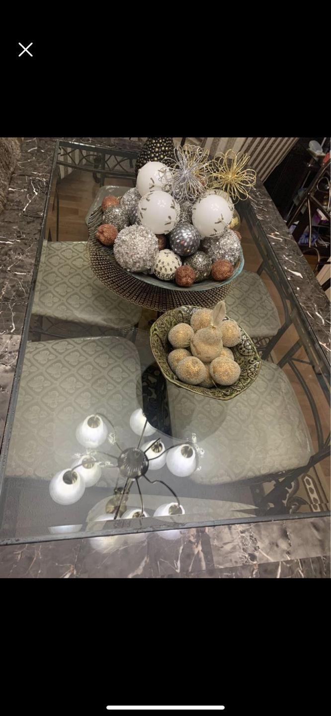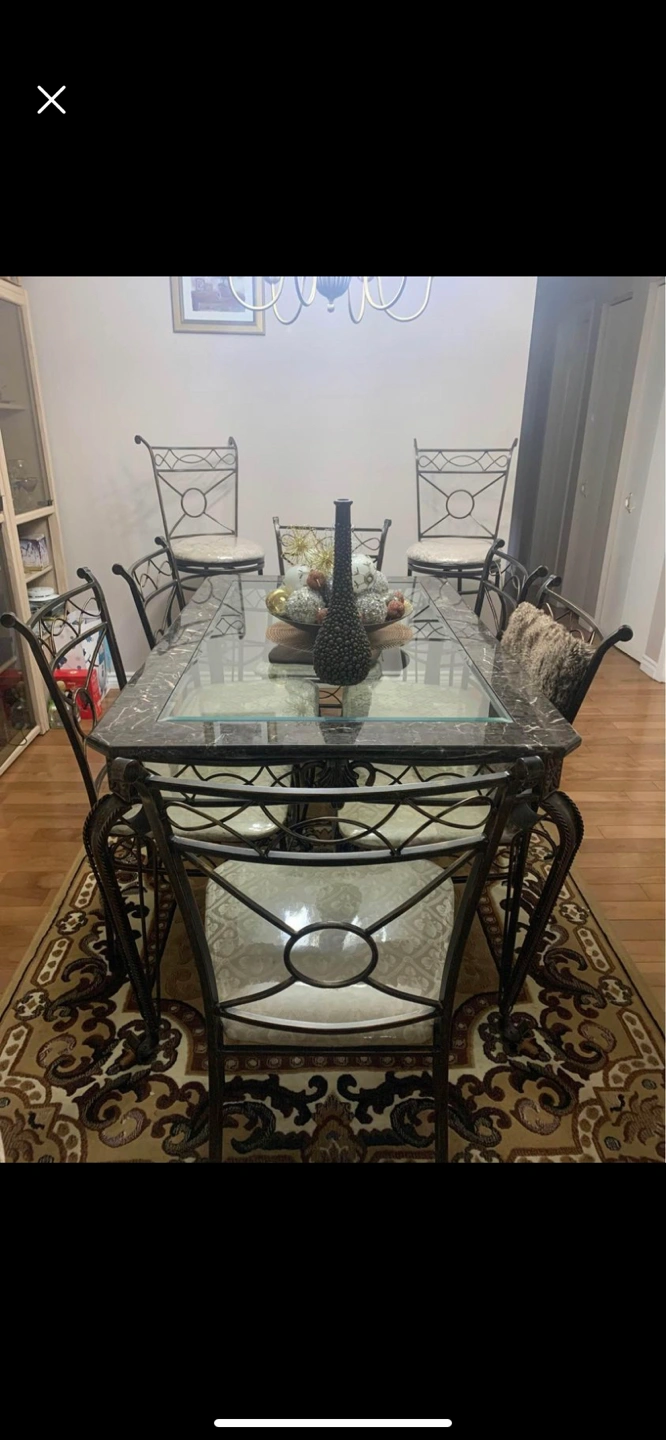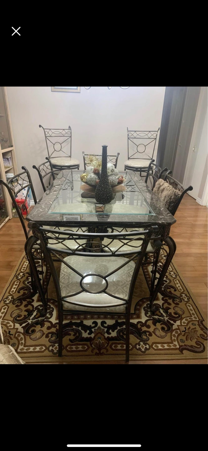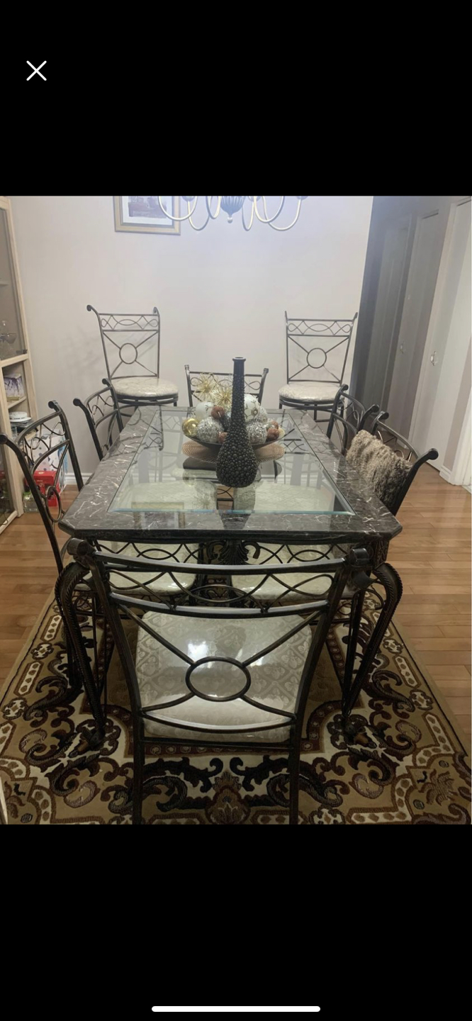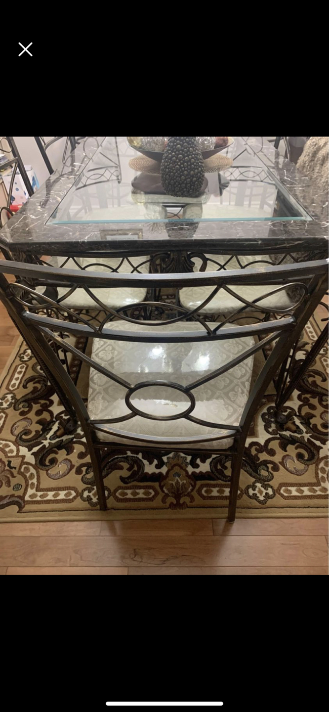 The Table and chairs are in great condition. Chairs has no stains and is covered with a plastic.