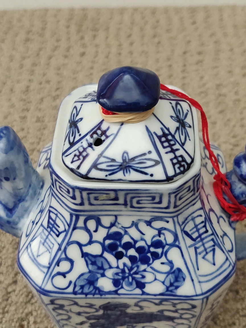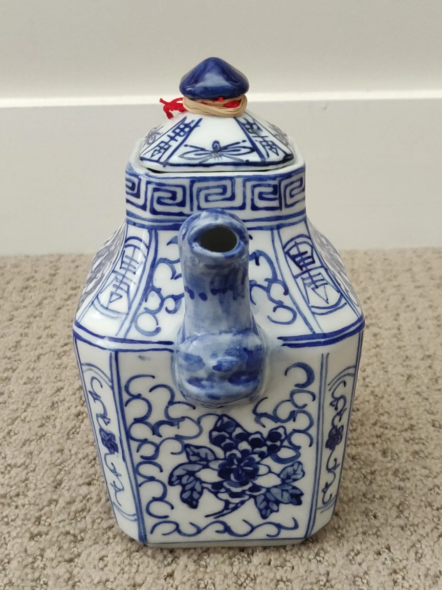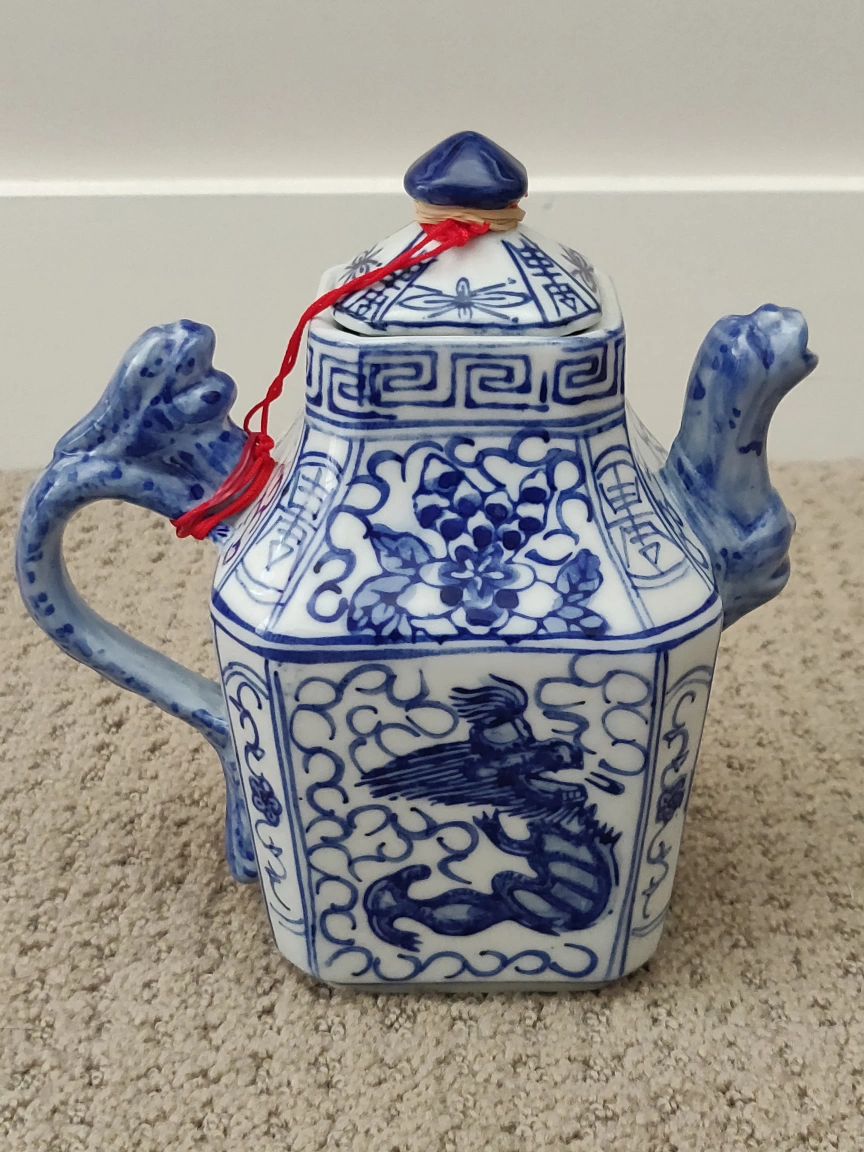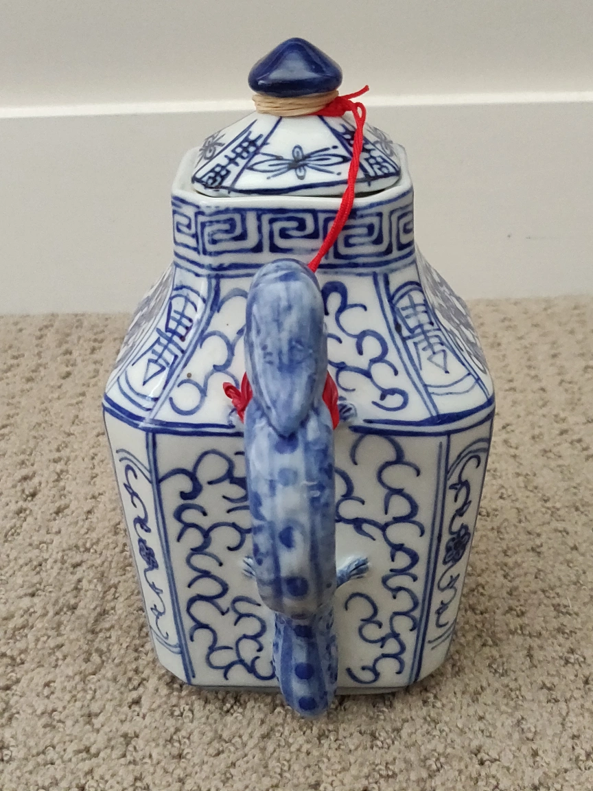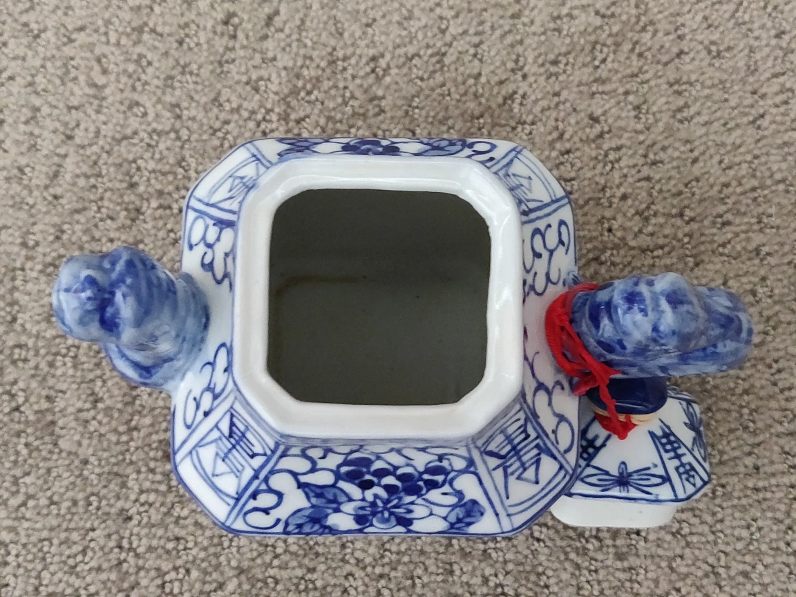 Antique Chinese Teapot Dragon Foo Dog Porcelain Square Tea Pot