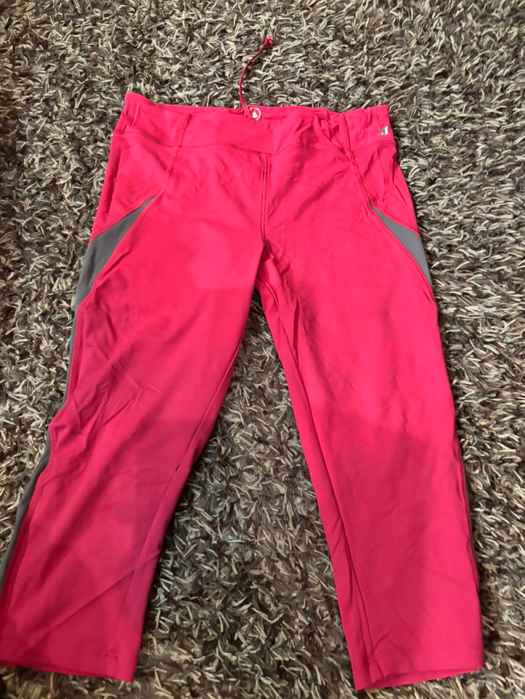 60Women's cropped leggings. Pink with grey accents. Size Medium