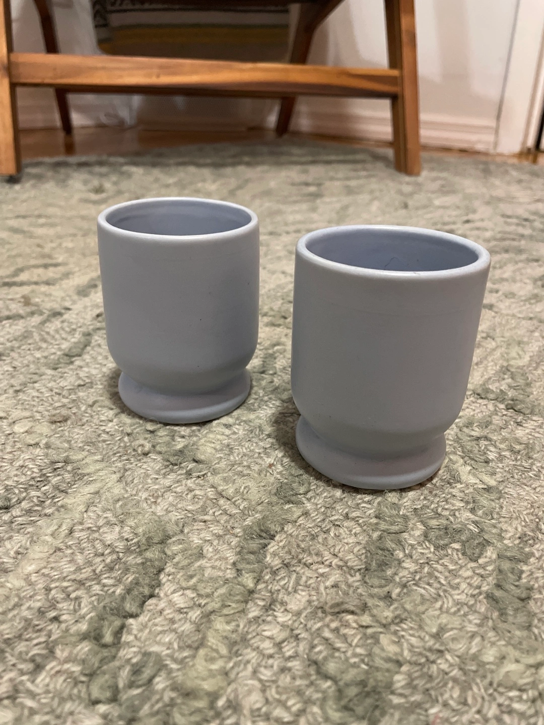 Two small Urban Outfitters light blue ceramic planters. Perfect for succulents or small plants. Simple, modern design. Slight foot at the base.