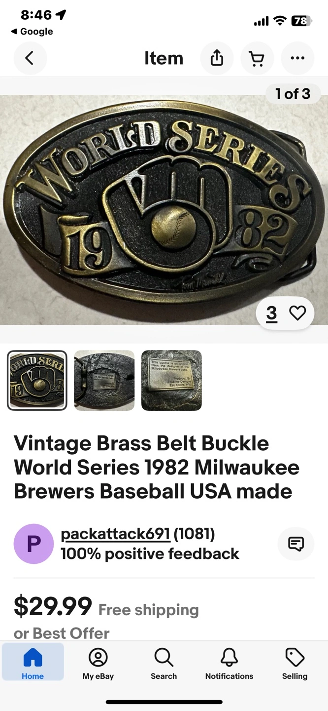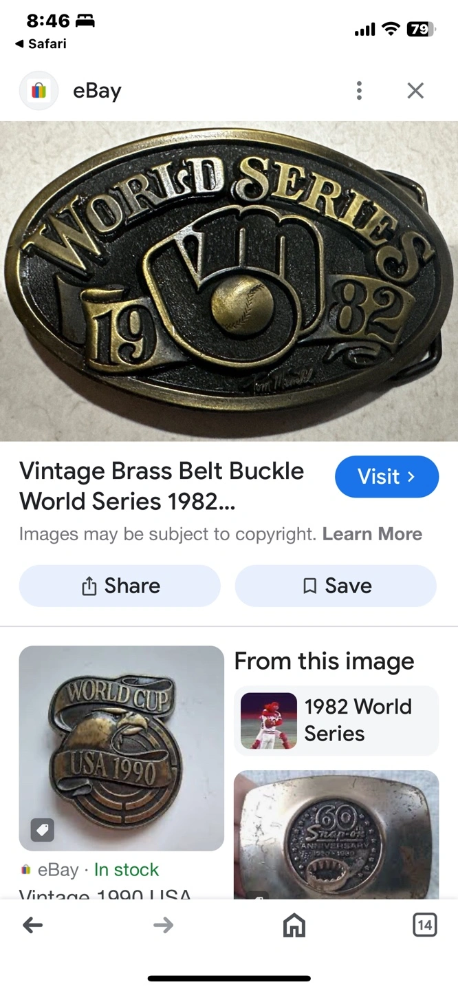 Vintage 1982 World Series Milwaukee Brewers Belt Buckle