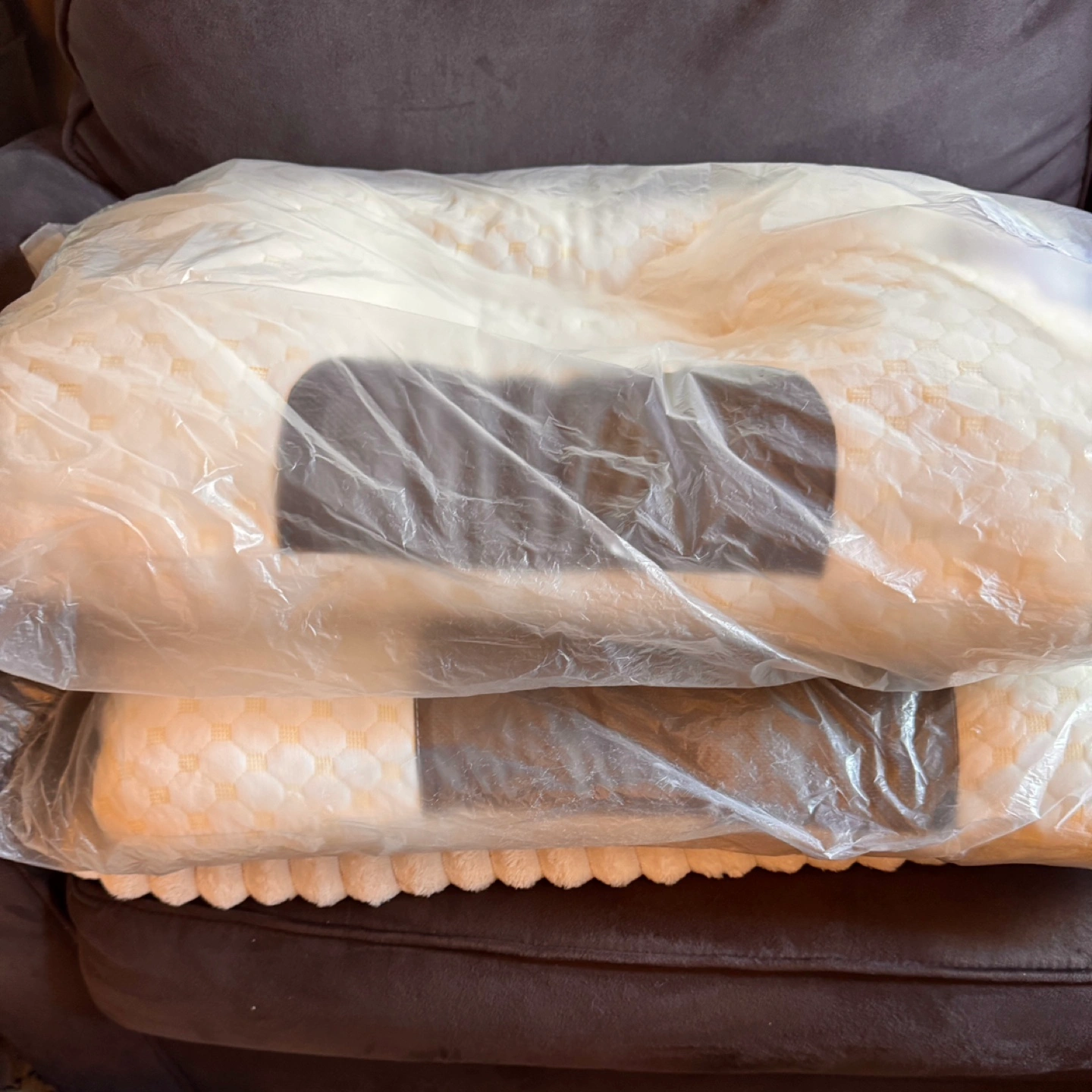 441Two white pillows with a dark gray center panel. Soft and fluffy. Great for neck support. New with tags.These are Temu pillows. I have shown one that I use. I bought too many and they refunded me so I am giving them away. They are not super high quality but good if you like a little cushioning with minimum neck rise. They are a bit off white. The depth measurement is the middle section- narrowest Feel free to ask questions. It would be helpful if you could come to my neighborhood but other arrangements can be made.