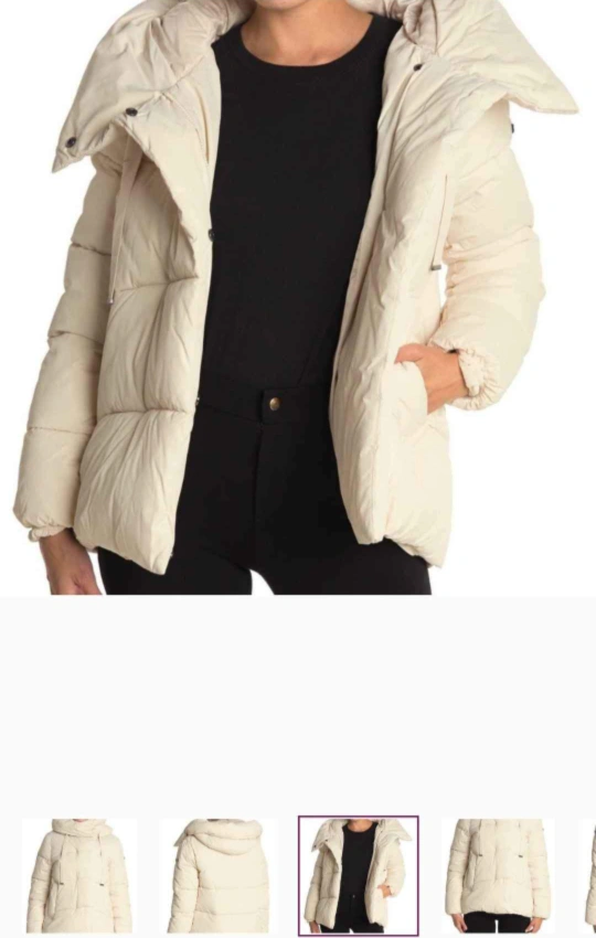 BCBGMAXAZRIA Women’s Quilted Winter Puffer Coat with Oversized Hood Size: L