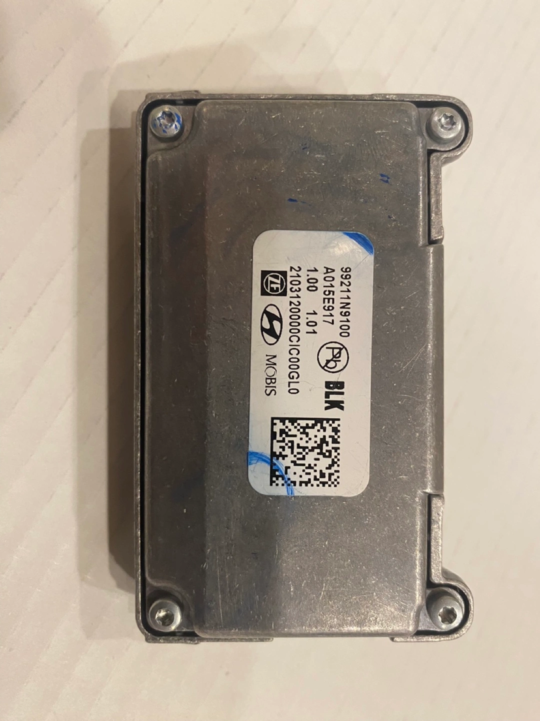 Used Hyundai Mobis Blind Spot Detection Camera Module. Part number 95211N9100. Includes small camera lens. Aluminum housing.