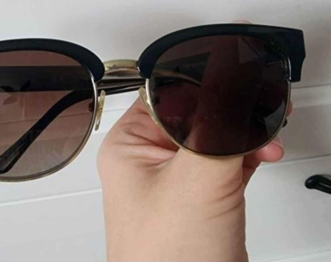 Women's sunglasses. Black frames, brown lenses. Gold accents. Polarized lenses. Excellent condition.