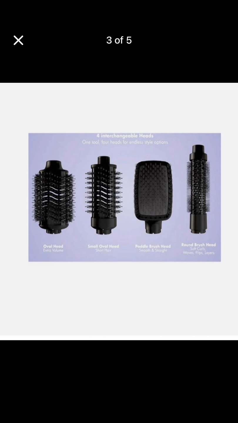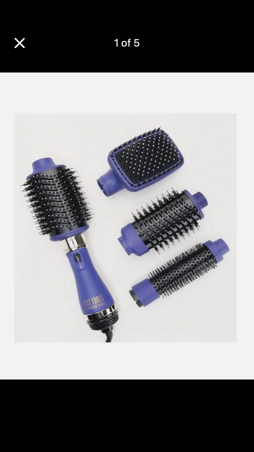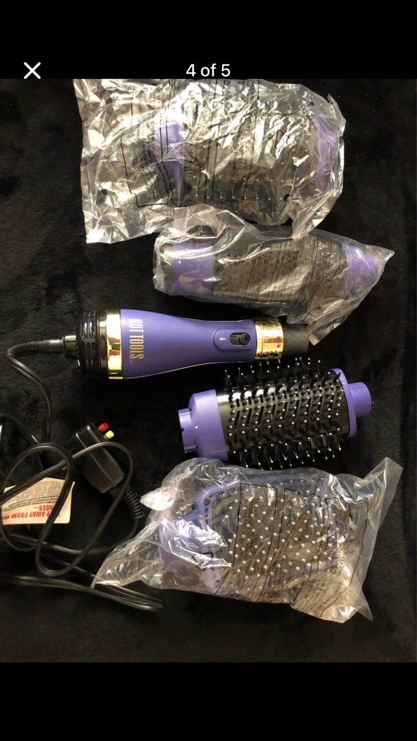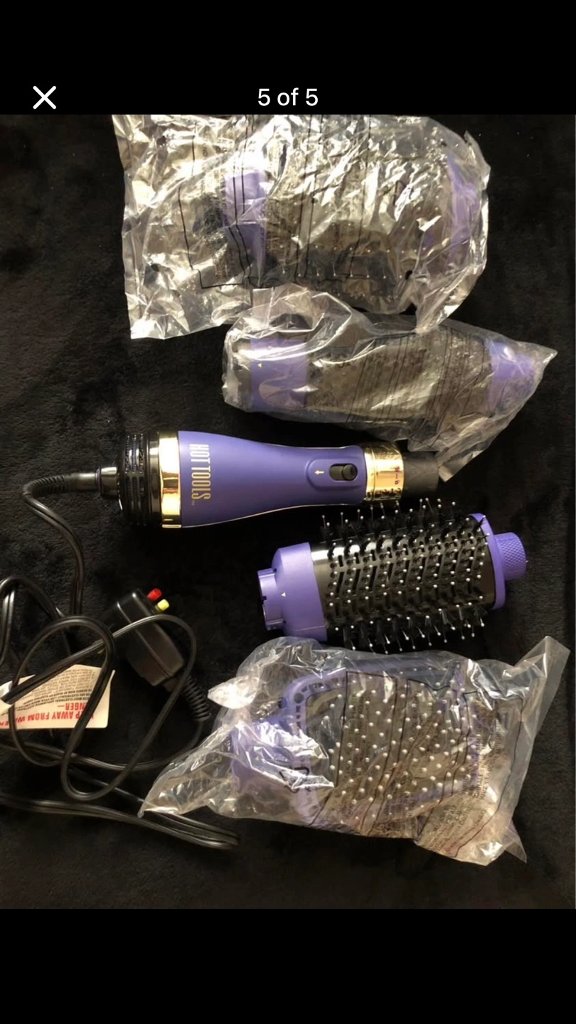 New, never used Hot Tools hair styling brush set. Includes four interchangeable heads: oval, small oval, paddle, and round brush. Detachable design for easy storage and on-the-go styling. Comes with original packaging and power cord.
