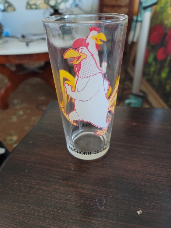 18Clear glass features a cartoon rooster. Great for collectors. cash and pick up only