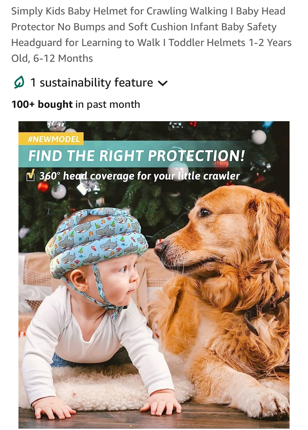 158Soft cushioned infant baby safety headguard. Toddler helmet for ages 6-12 months. Provides 360 degree head coverage.