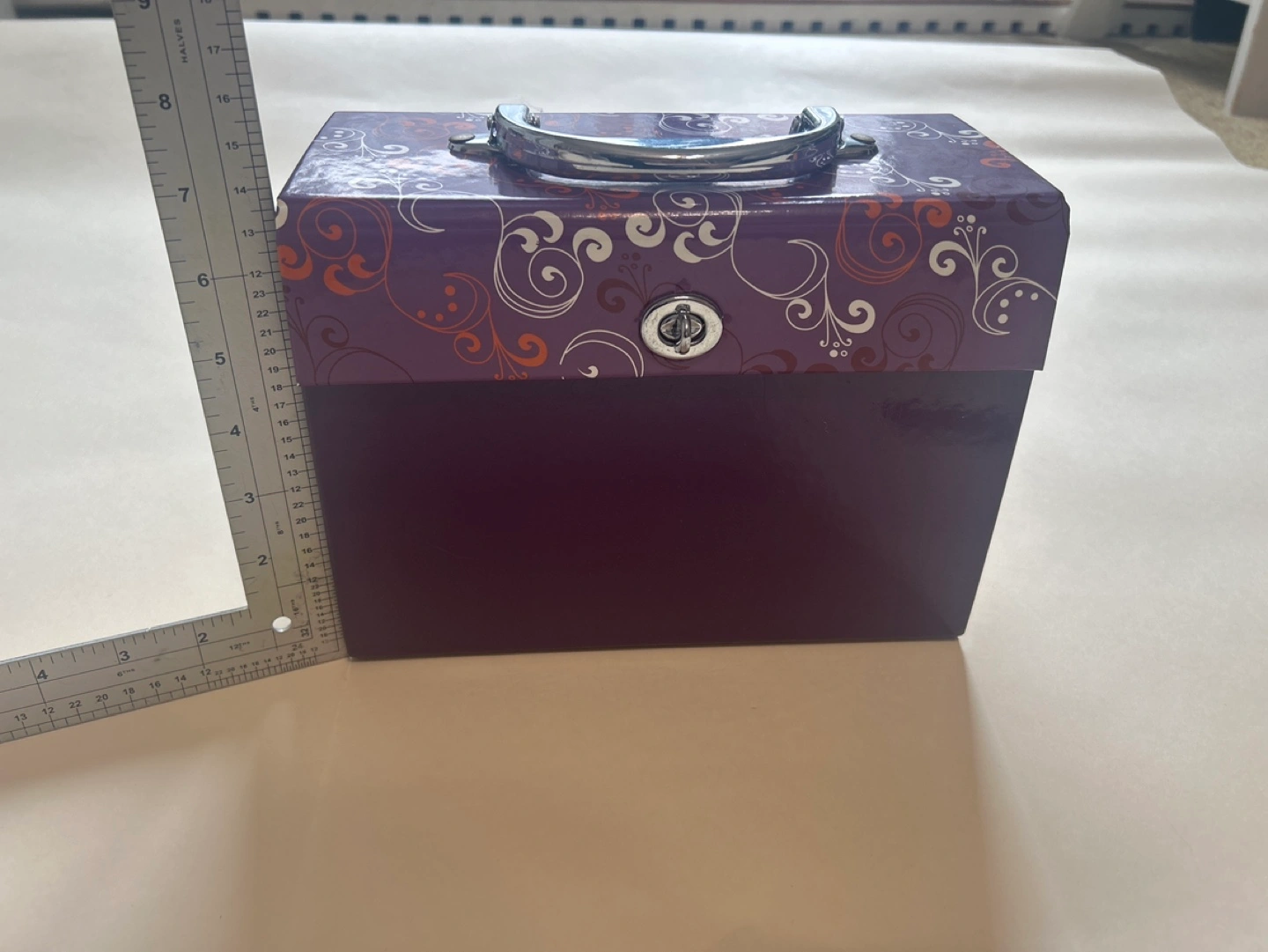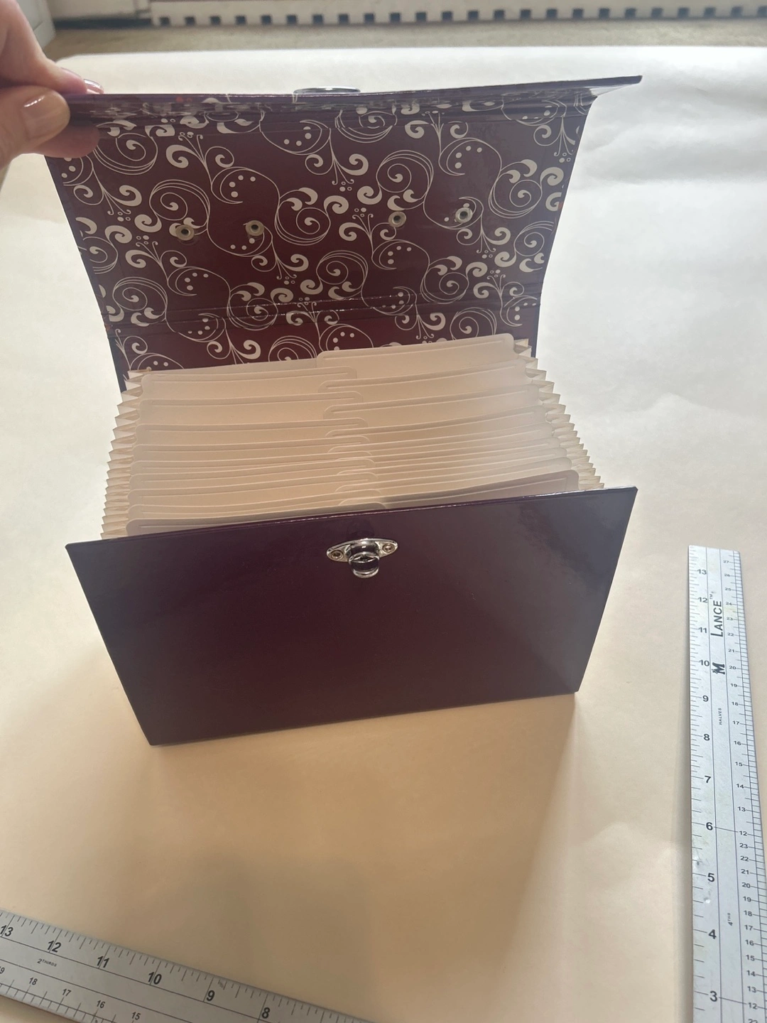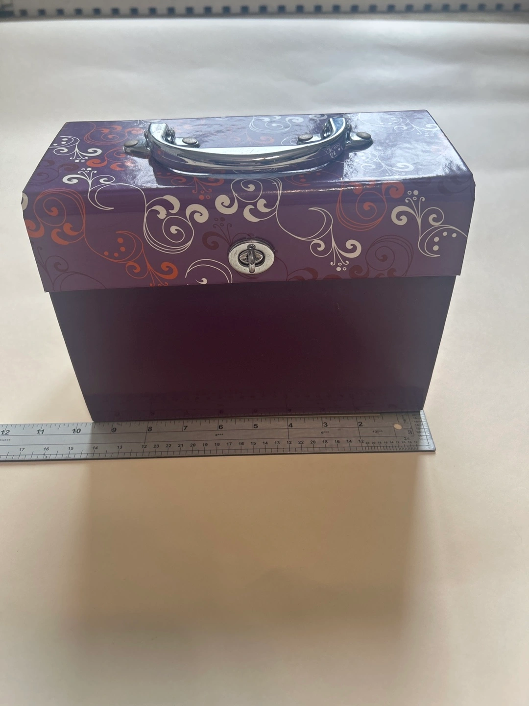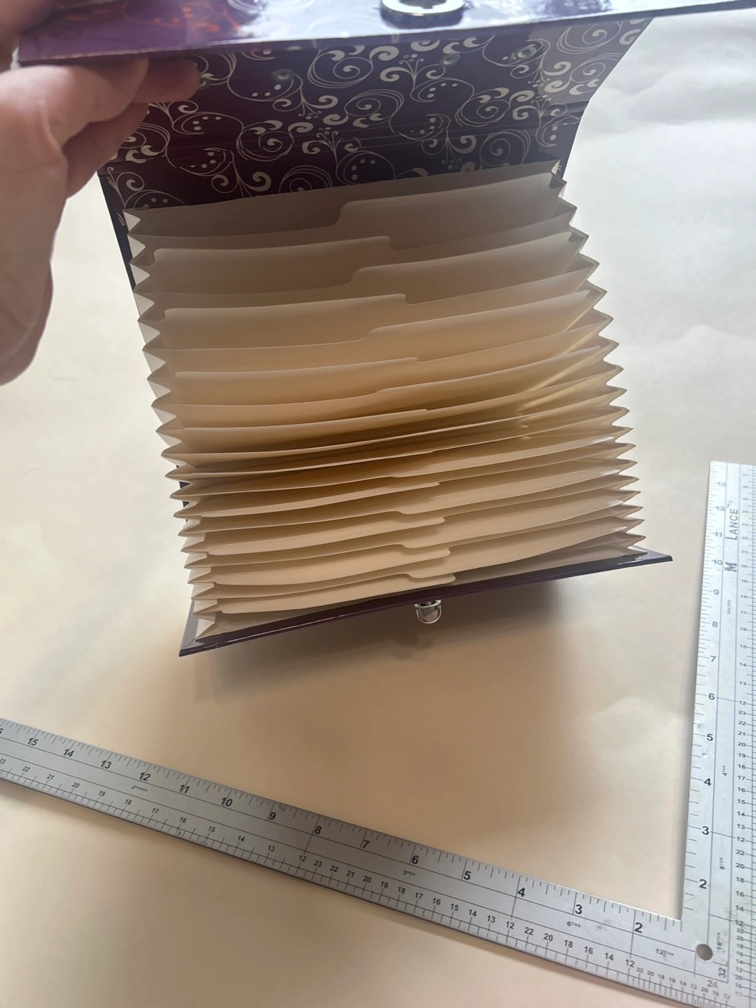 70Purple accordion file folder. Features a carrying handle and clasp closure. Many interior pockets for storage. Staples brand. Never been used