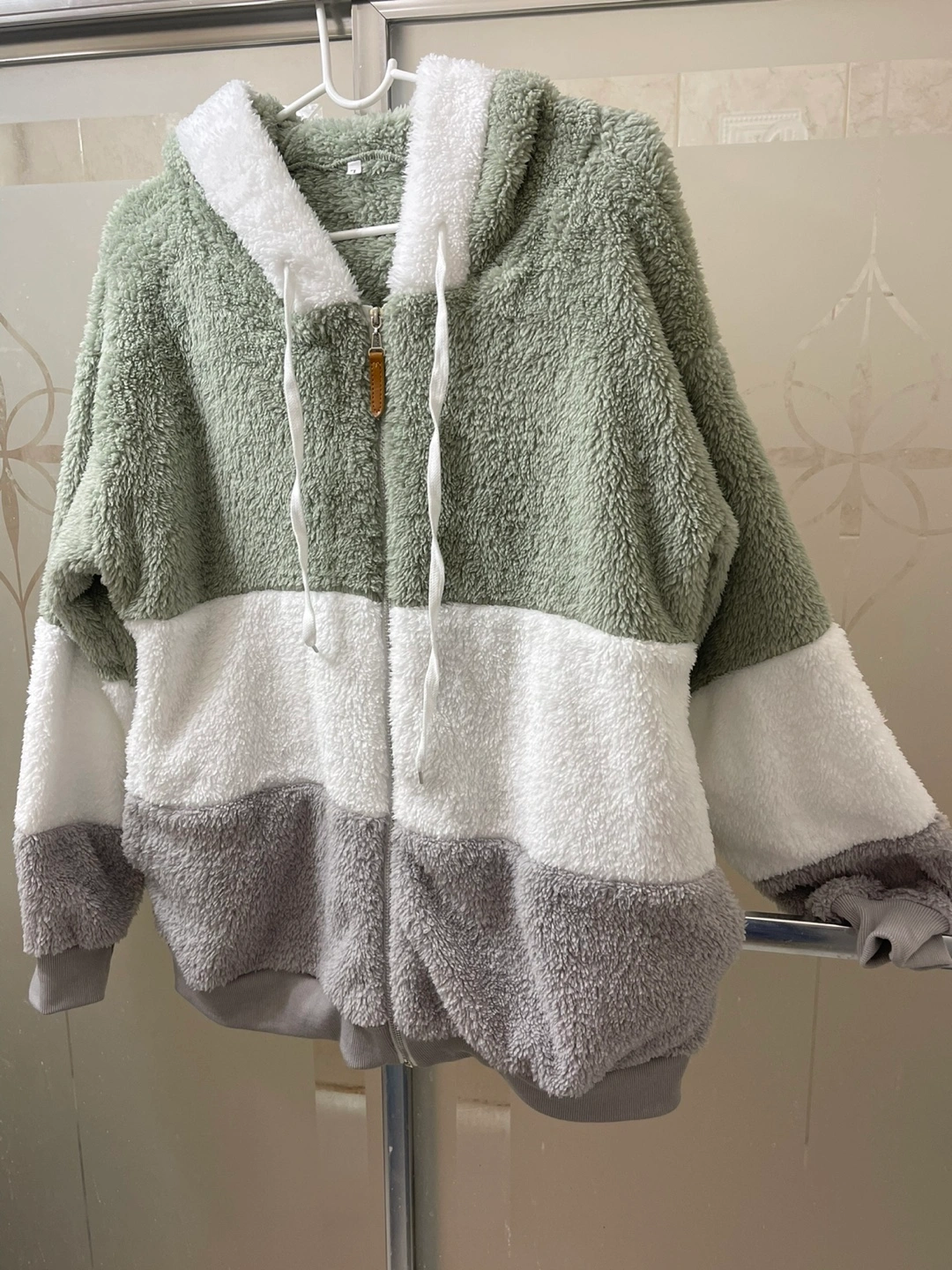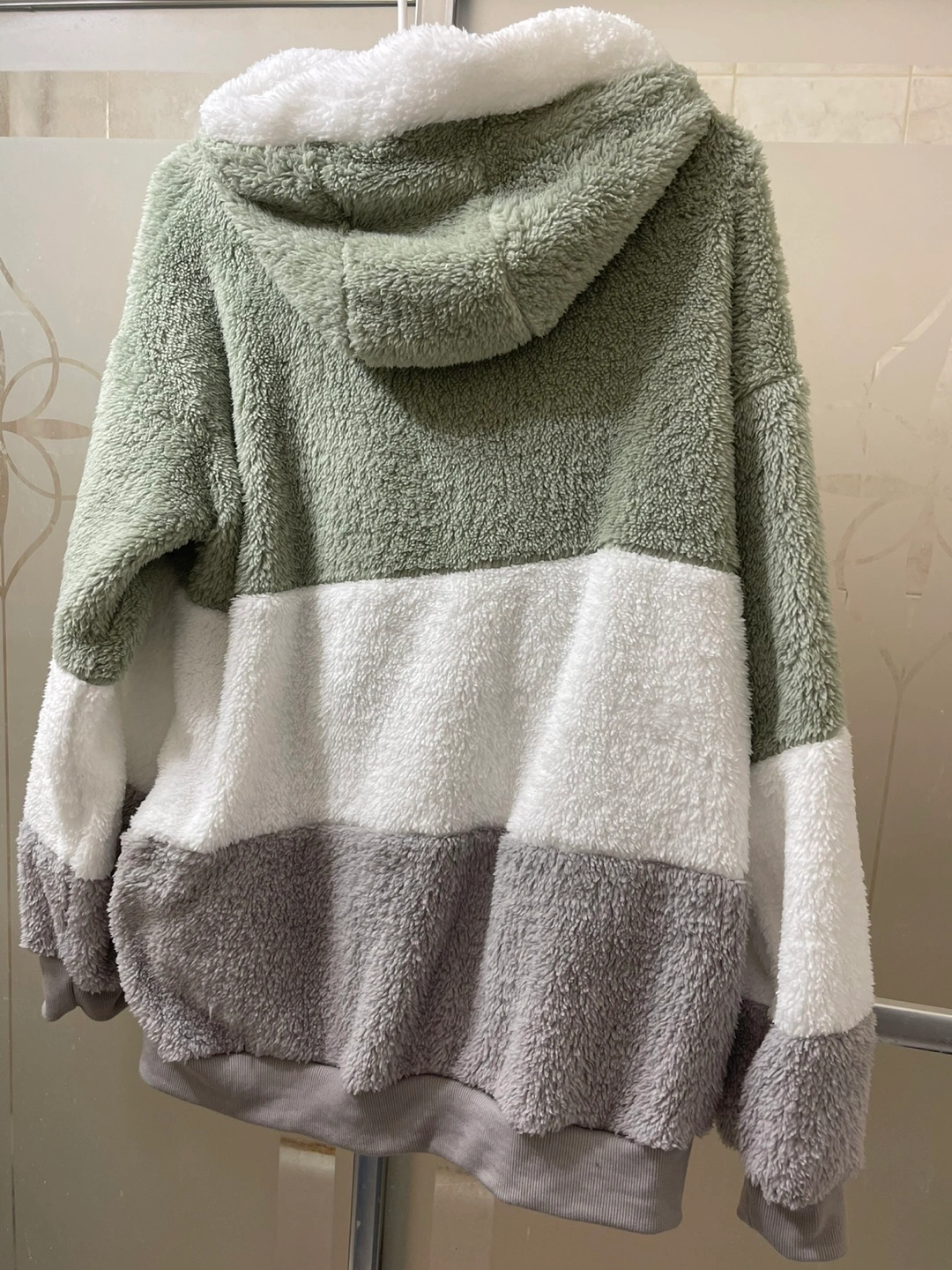 33Soft and warm sherpa fleece hoodie. Three-color block design. Full zip closure. Drawstrings on hood. Great for lounging or layering. Price $25 negotiable