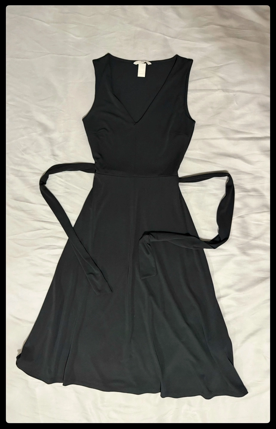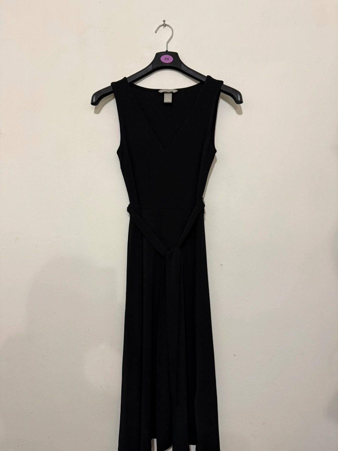 278Elegant black midi dress. Sleeveless design. V-neck. Self-tie belt. Great for any occasion. Still in a good condition Pick up : Elmhurst, US Supermarket OR *Manhattan : 9 Avenue nearly subway (E train 50 st station ๐ ) Cash ๐ต