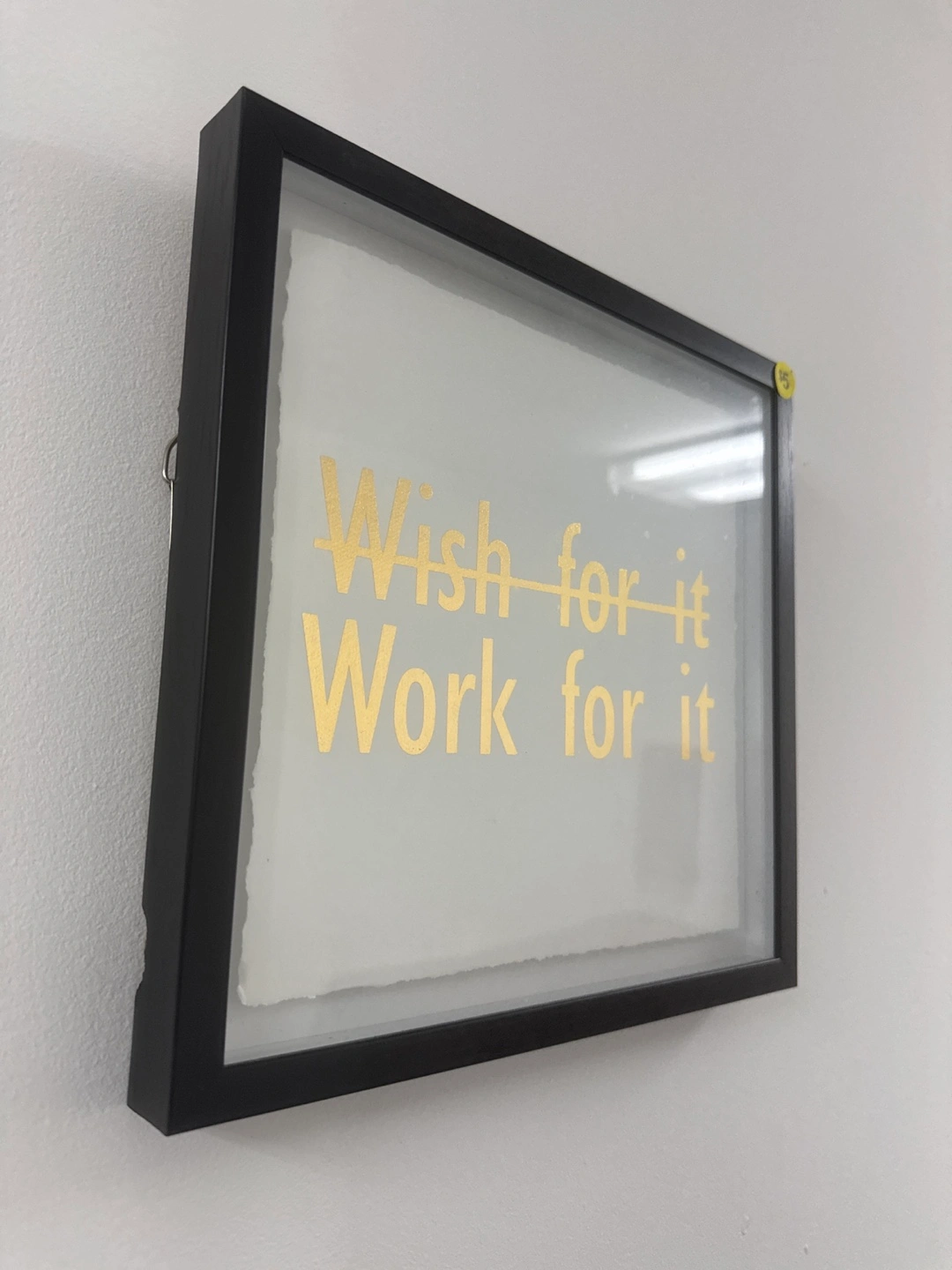 Framed art print. Gold lettering on off-white paper. Inspirational quote. Black frame. Ready to hang.