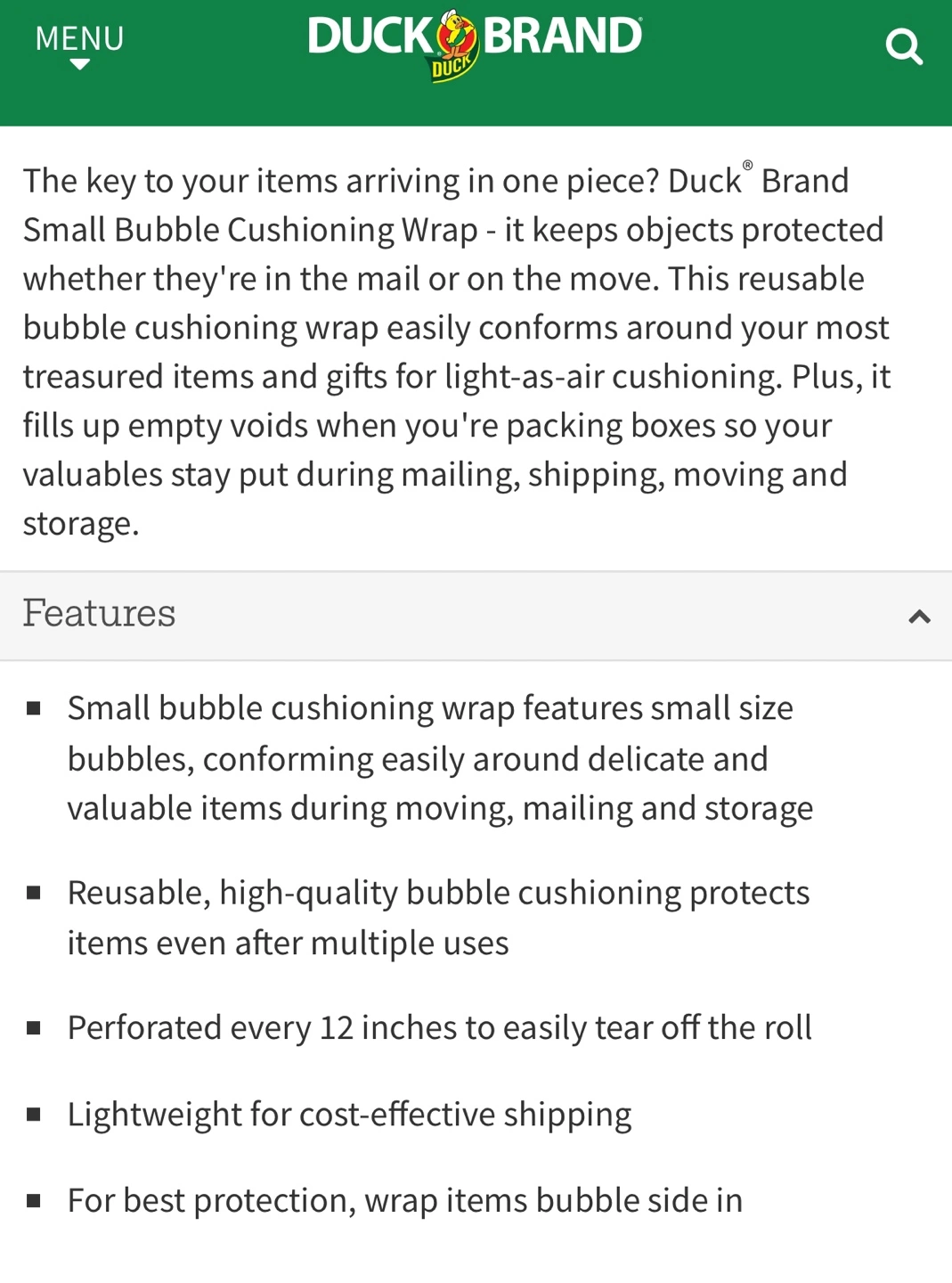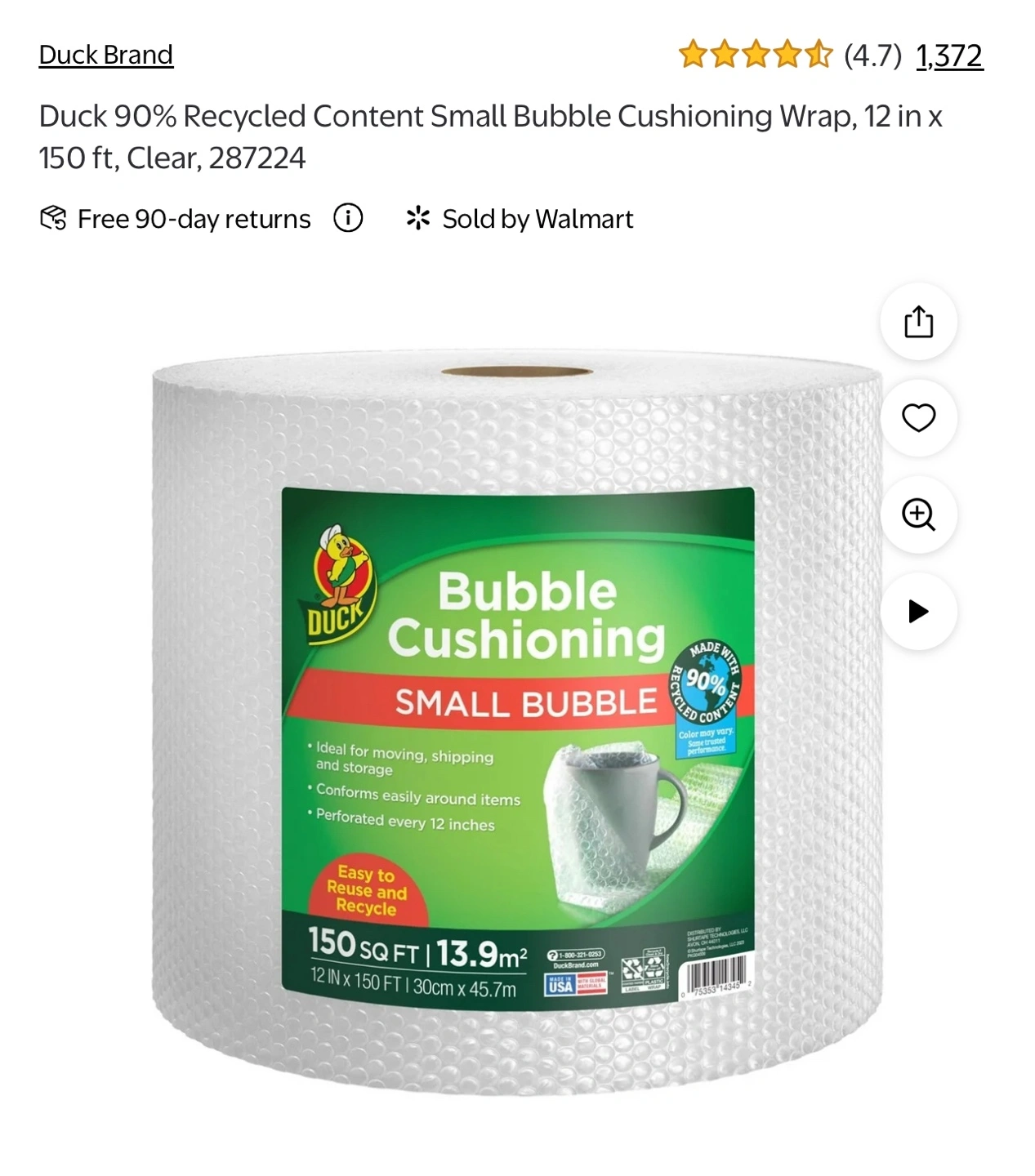 🥕 Duck Brand Bubble Cushioning Wrap - 12 in x 150 ft