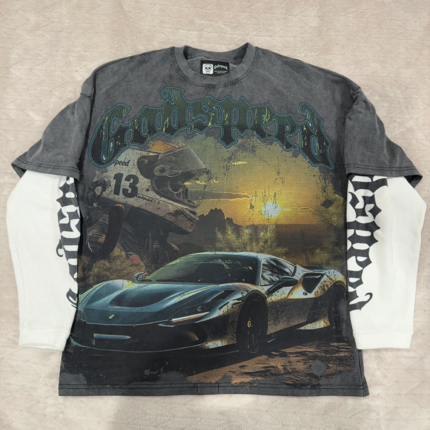 Godspeed Sunset Drift Long Sleeve (Grey Wash) Size S