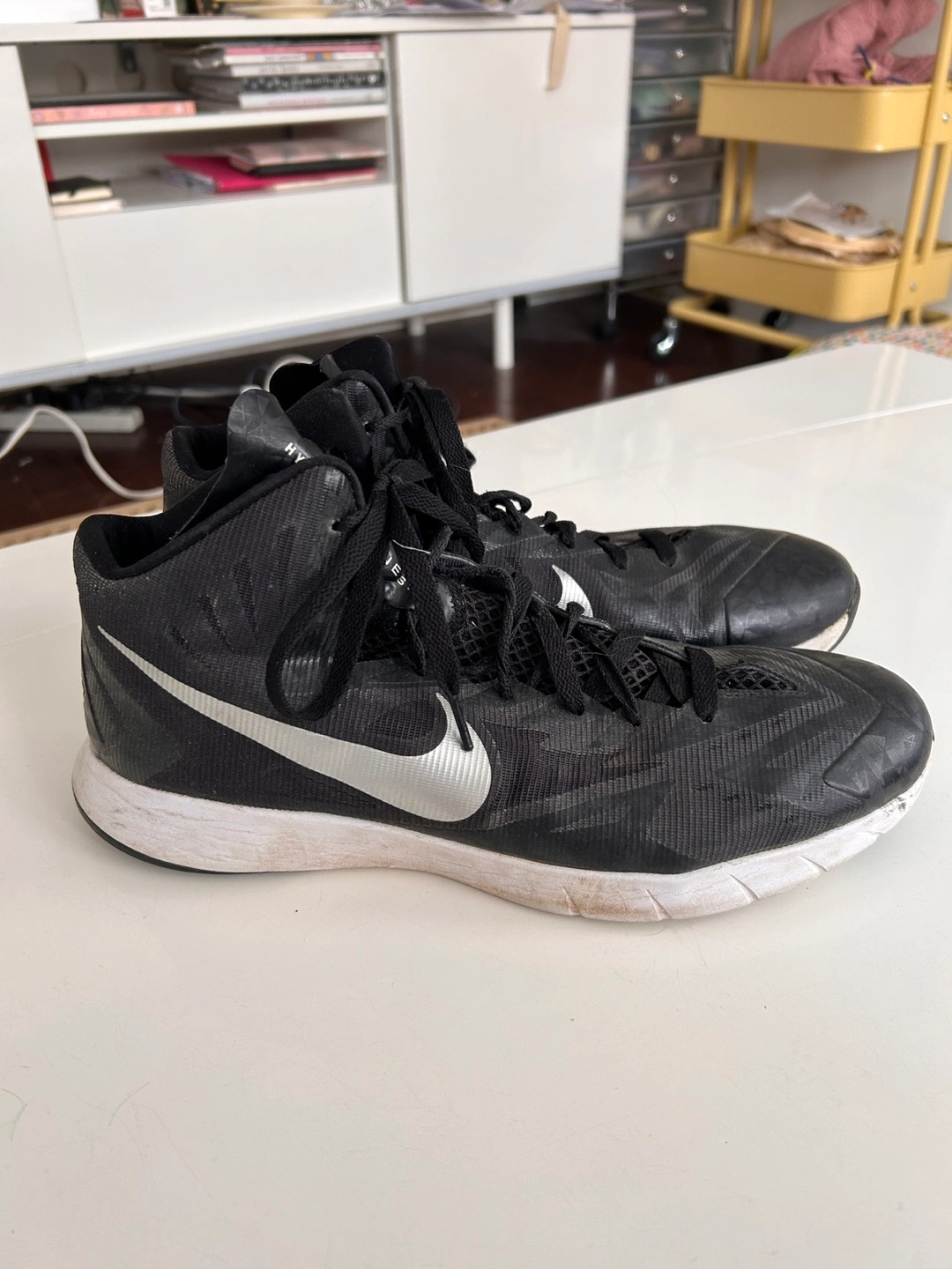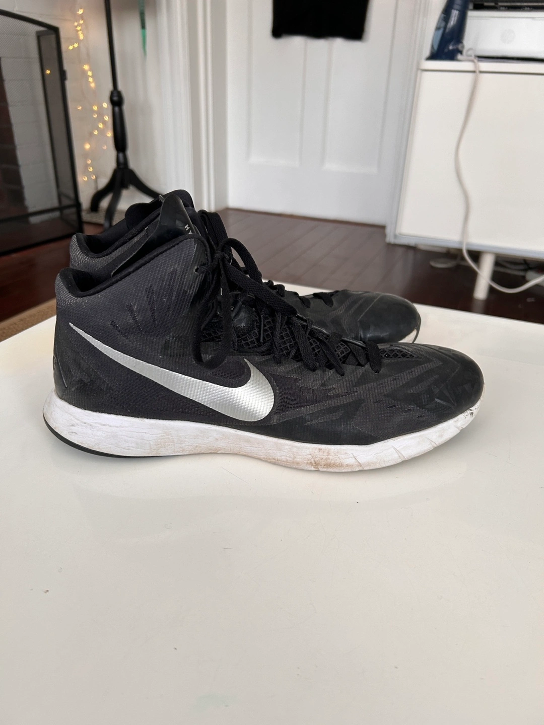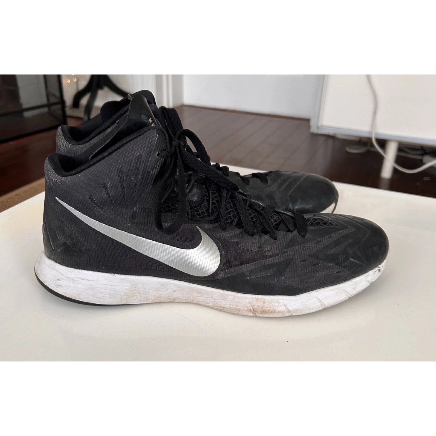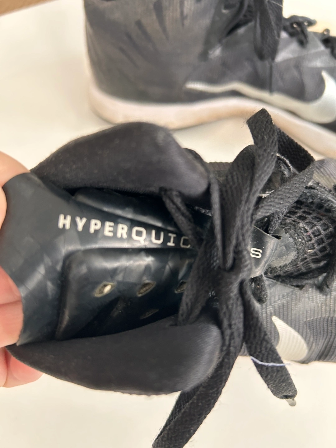 Nike Lunar Hyperquickness in black and silver with white soles.