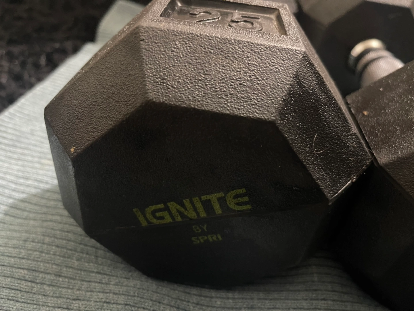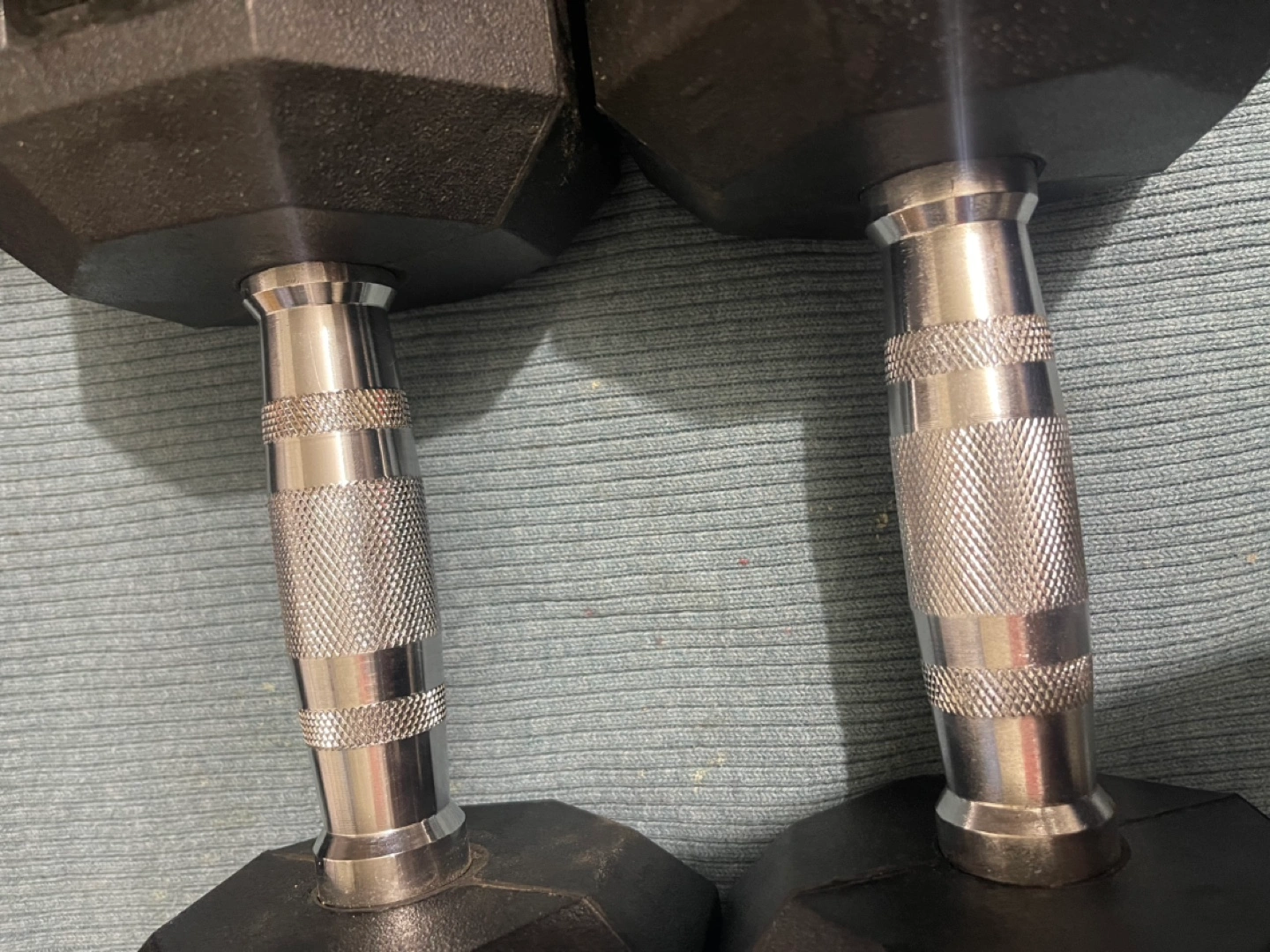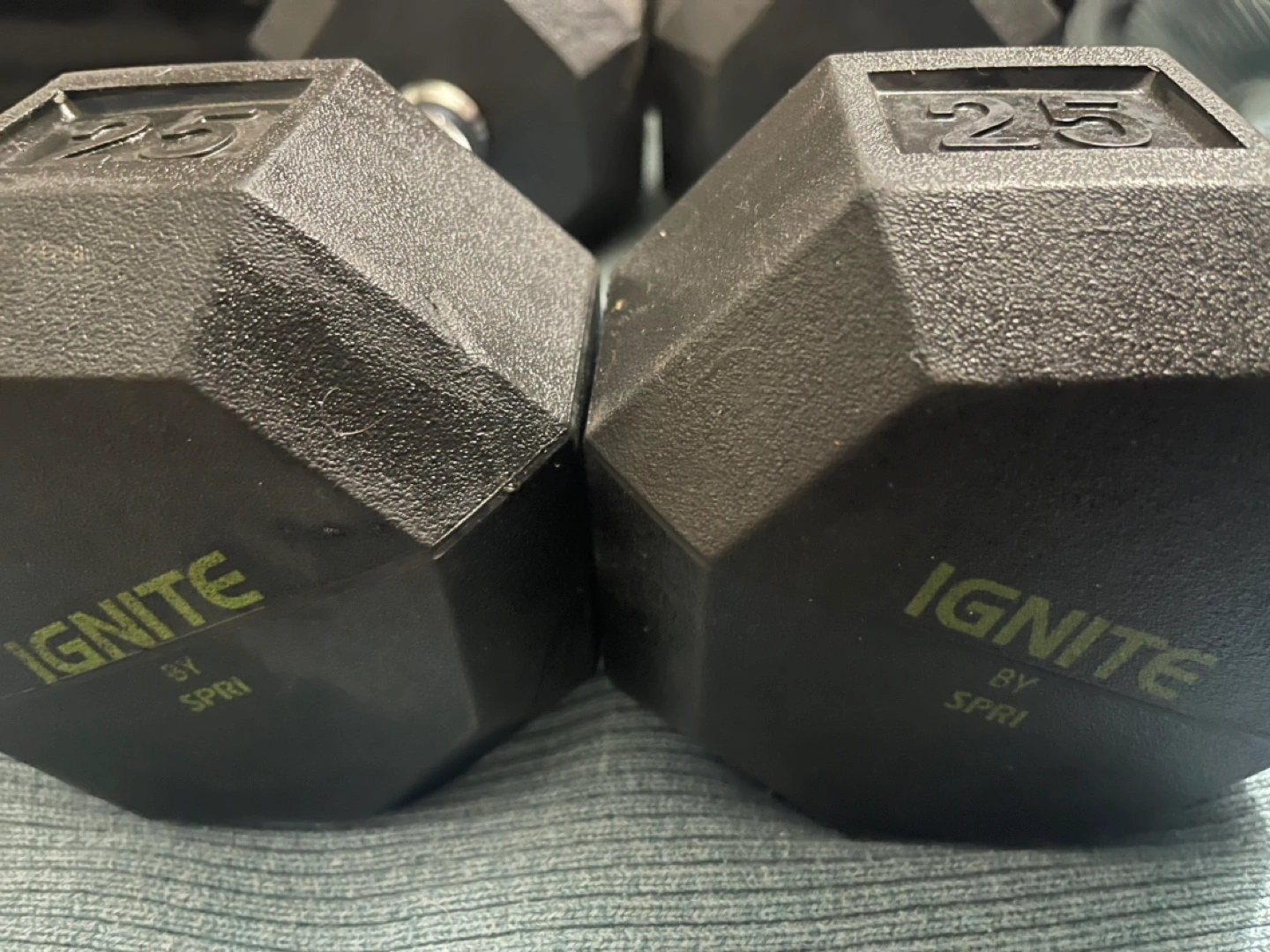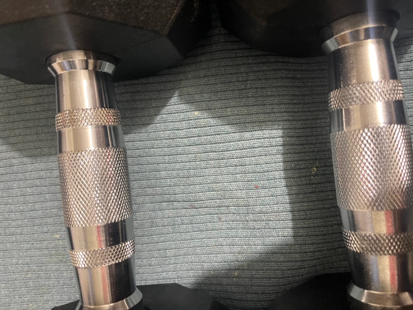 262Two 25-pound hex dumbbells. Chrome handles. Excellent for home gym workouts. Sold as a pair.